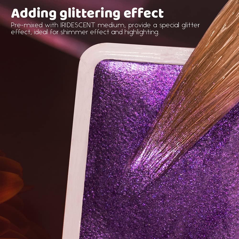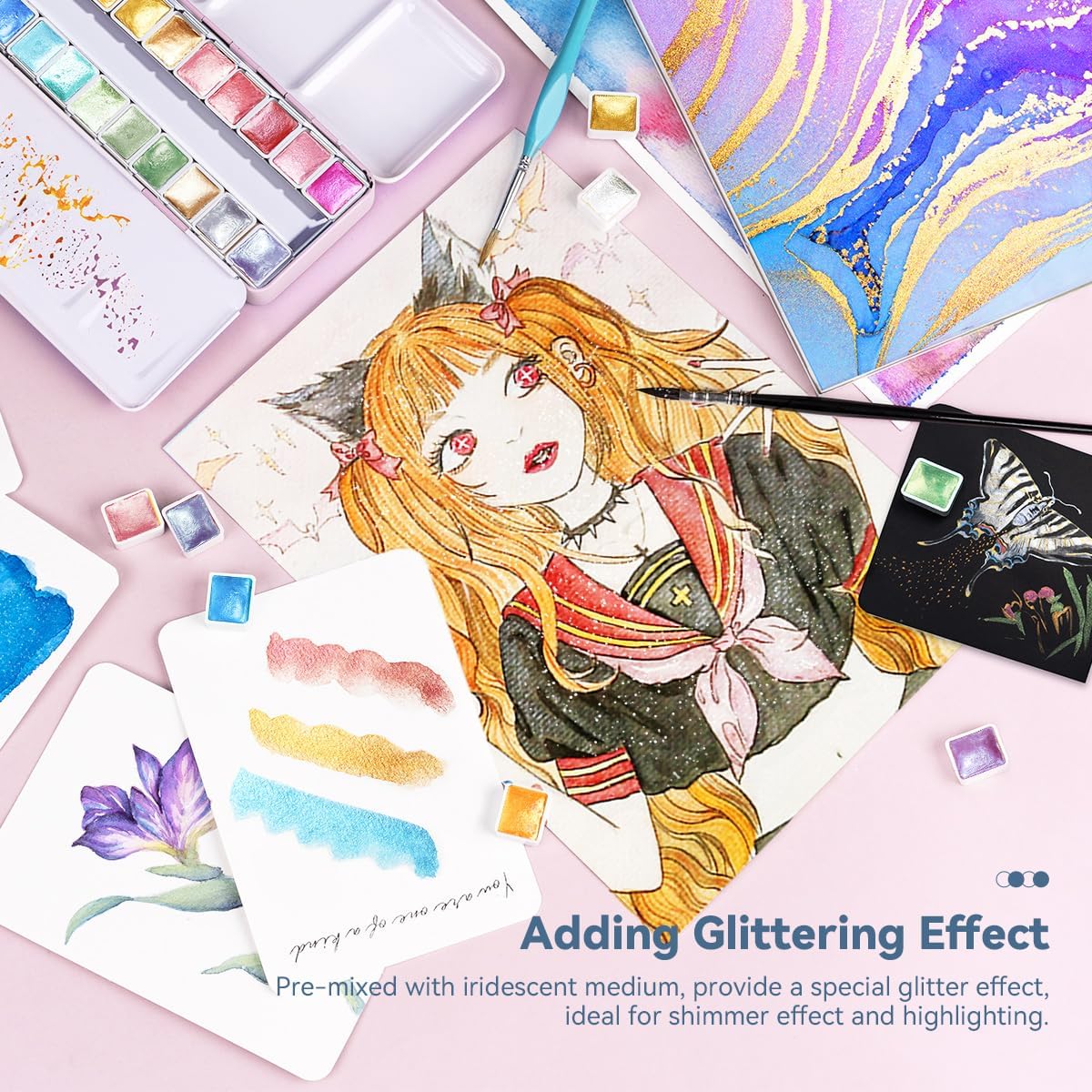 - 24 Metallic Glitter vivid colors: ultra-pure pigments that wonโt easily become muddy when mixed; high transparency; strong tinting; excellent lightfastness ratings. These top-quality paints will make your artwork stay vivid for a very long time