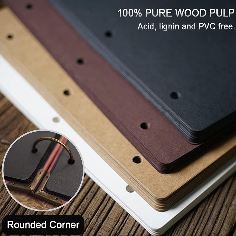 - 100% PURE WOOD PULP - Acid free, Lignin and PVC free, 9.84 x 10.24 inch (25 x 26 cm) page size three-ring loose-leaf scrapbooking album refill sheets paper