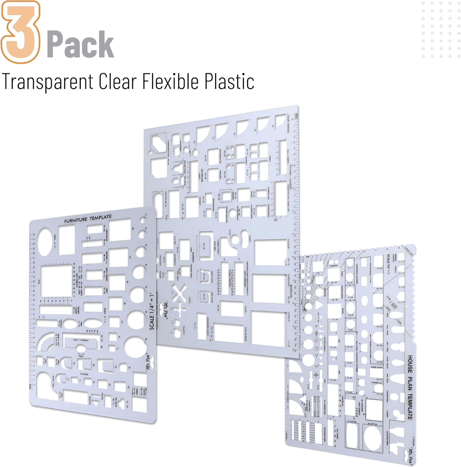 - 3 Pc Architect Drawing And Interior Design Template Set (Scale: 1/4 Inch = 1 Ft): House Plan Template, Furniture Template, And Kitchen, Bed & Bath Template