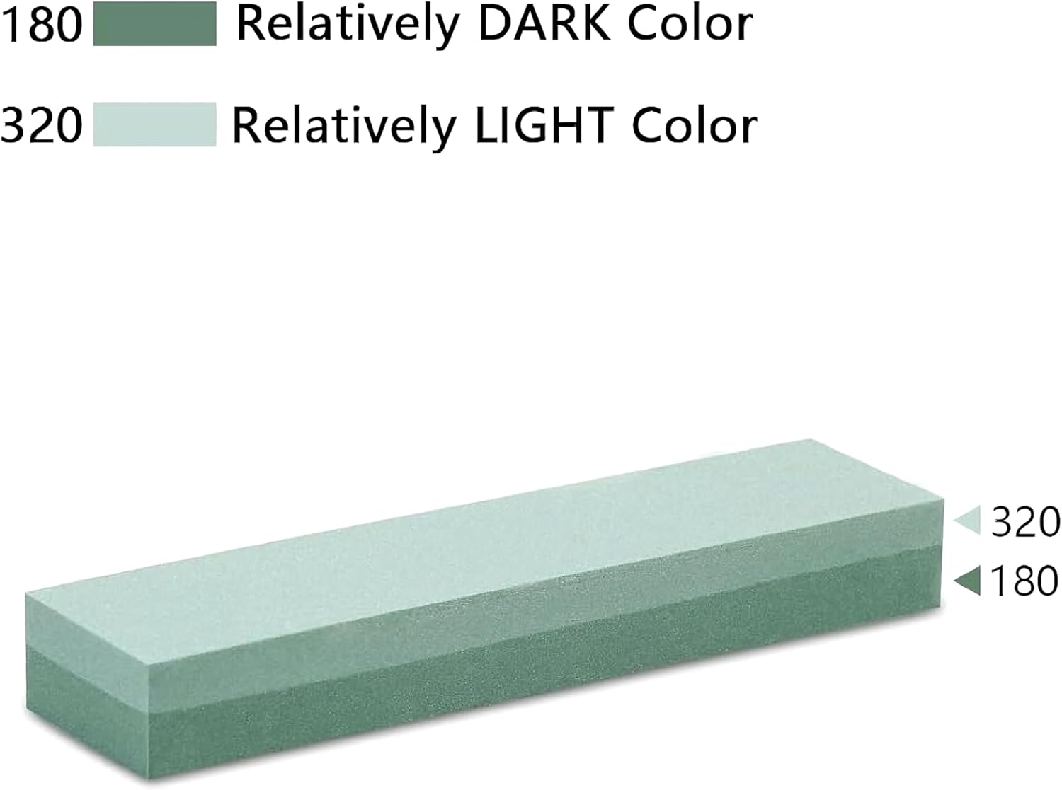 - Product Description: Dimensions: 8β (L) x 22β (W) x 1β (H). Material: Green Silicon Carbide. Features include: 2-sided stone block, Dark Green: 180 Grit, Light Green: 320 Grit
