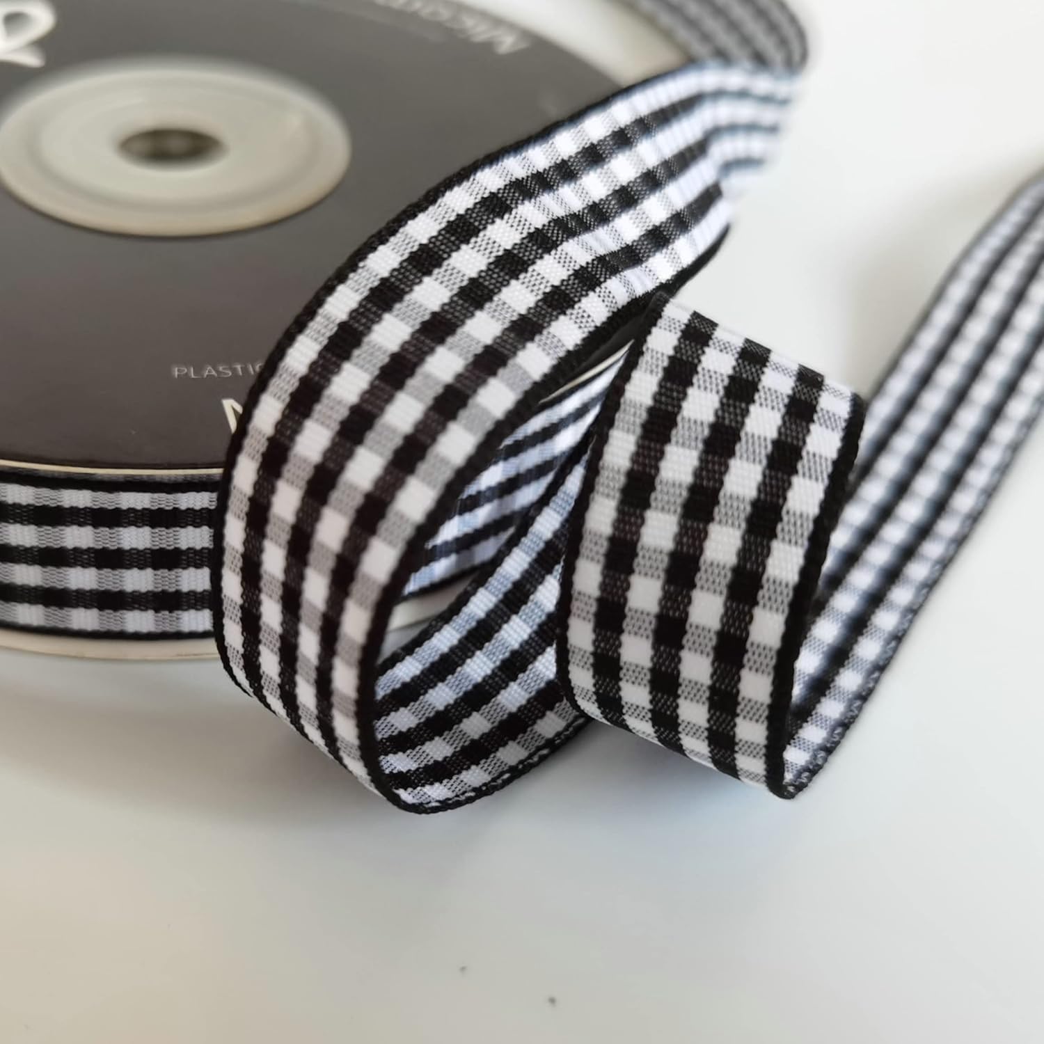 Black and White Wovon Edge Gingham Ribbon 25 Yard Each Roll 100% Polyester (5/8", Black)