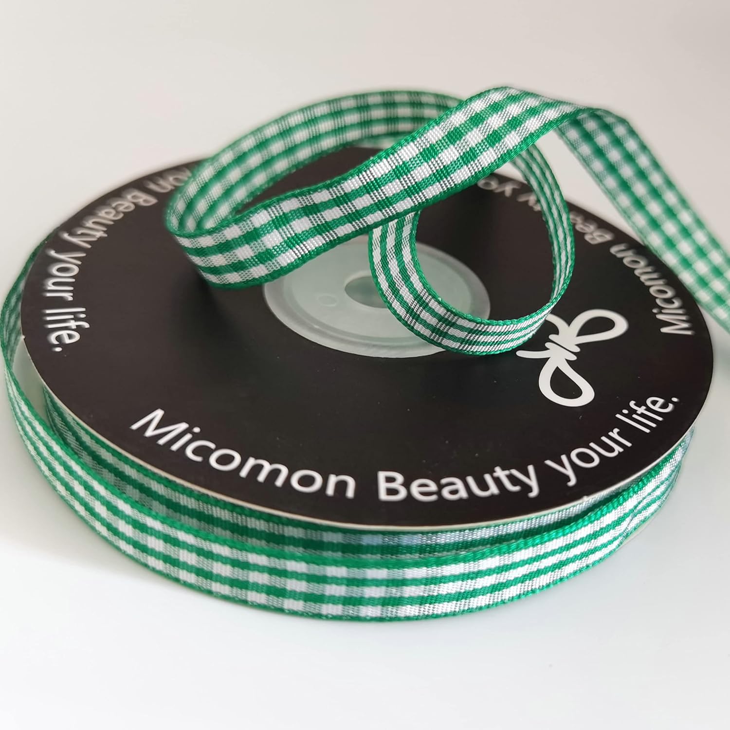 Green Gingham Plaid Checked Christmas Ribbon 25 Yard Each Roll 100% Polyester (3/8", Green)