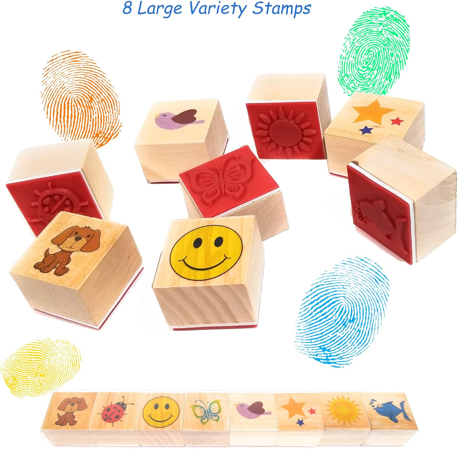 - π 8 LARGE STAMPS WOODEN SET - Why buy separate stamps? We have it included in this package! With different styles for your kids to start with and large easy to grip wooden blocks, they can immediately begin creating their artwork.