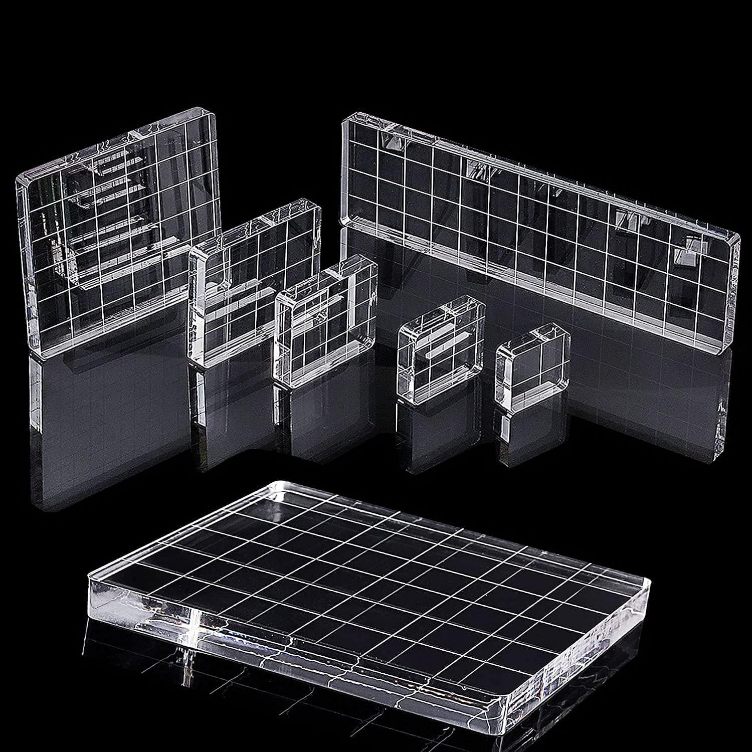 Whaline 6 Pieces Acrylic Stamp Block Clear Stamping Tools Set with Grid Lines for Scrapbooking Crafts Card Making, Assorted Sizes