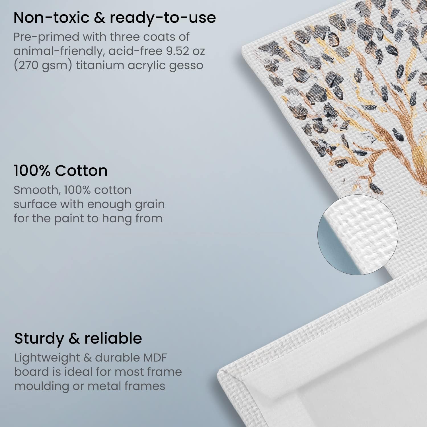 - Primed and Ready to Go: Each canvas is pre-coated with 8 oz. of acid-free acrylic titanium gesso, offering a smooth, ready-to-paint surface that lets you start creating immediately after unwrapping.
