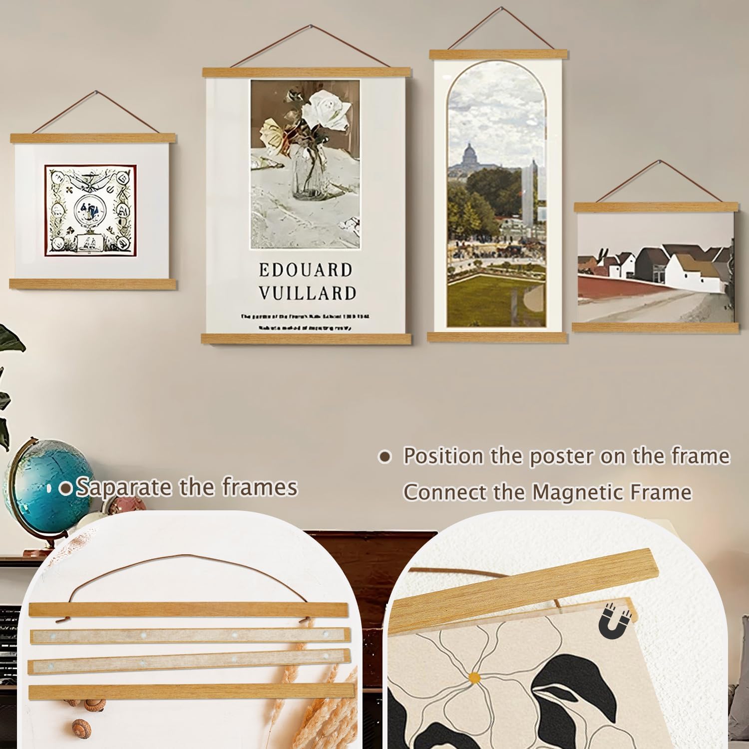 Artmag Magnetic Poster Hanger Frame, 9x24 9x12 9x11 Light Wood Wooden Magnet Canvas Artwork Print Poster Hangers Frames Hanging Kit (Teak Wood, 9")