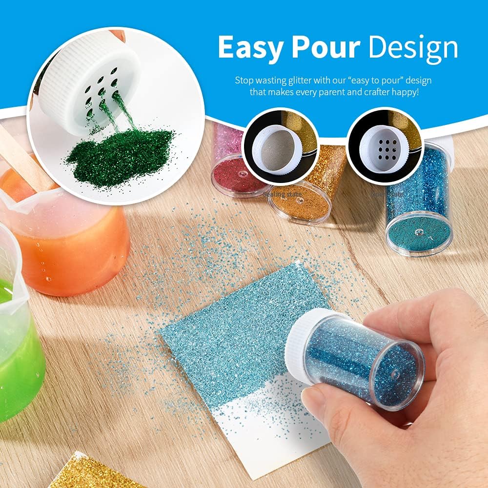 - EASY POUR JARS: Packaged well with seal tabs on each bottle, the tops shaker holes are also perfect for the glitter size - just the right amount is sprinkled