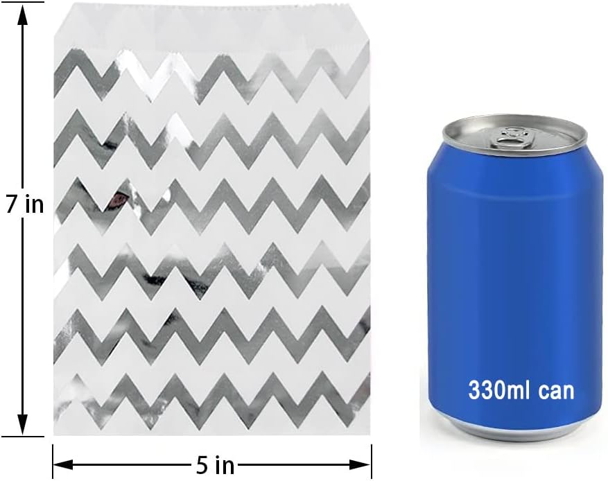 - Color and Size: Silver candy buffet bags 5 inches wide and 7 inches high. The size allows for convenience in packing and gifting, ensuring your treats stand out