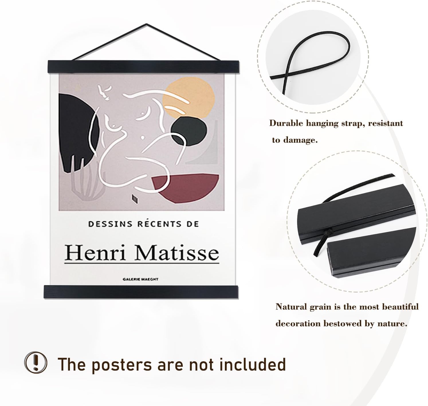 Artmag Magnetic Poster Hanger Frame, 8x10 8x12 8x24 Light Wood Wooden Magnet Canvas Artwork Print Poster Hangers Frames Hanging Kit (Black, 8")