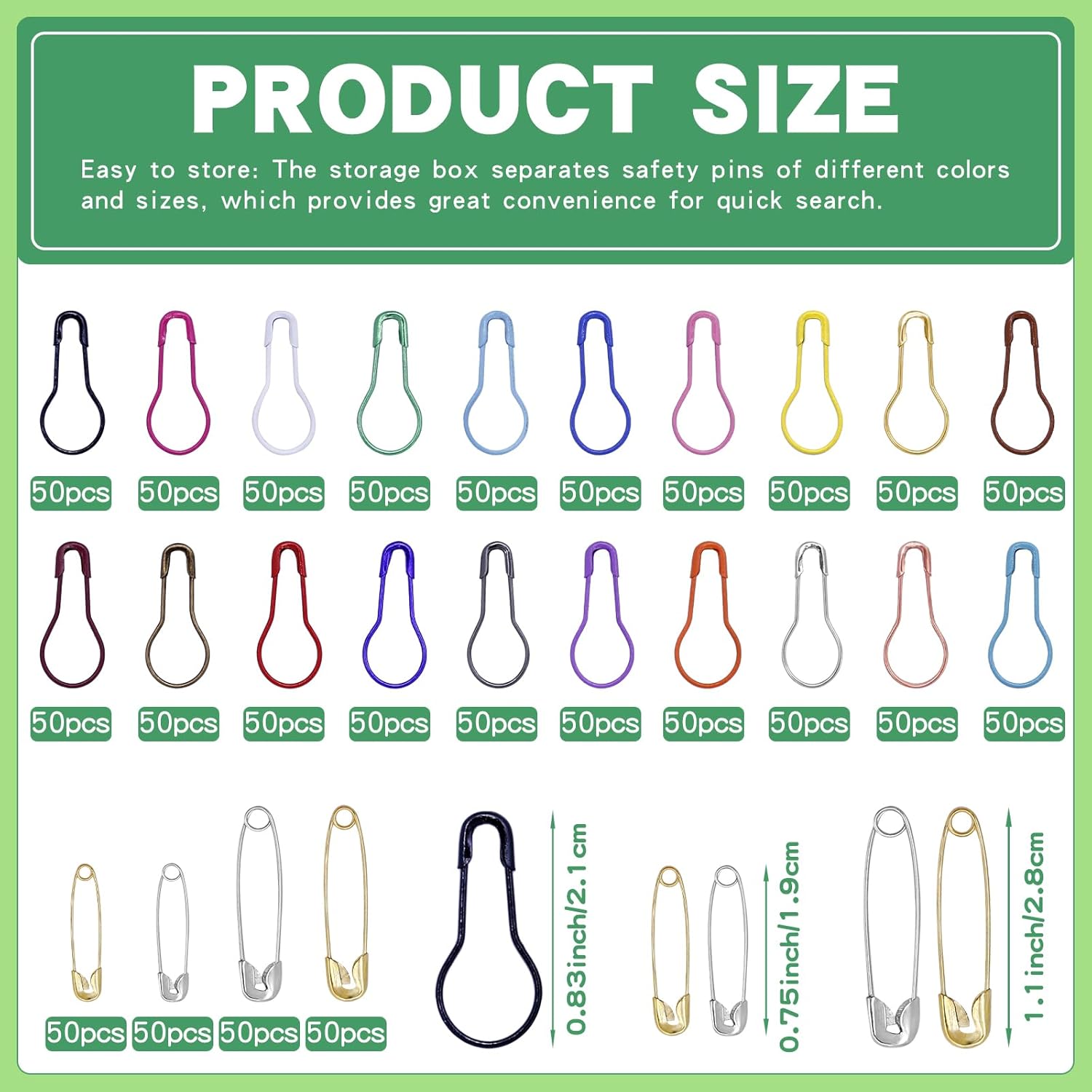 1200 Pcs 22 Colors Metal Safety Pins,Bulb Gourd Pins Pear Shaped Pins for Knitting Stitch Markers, Sewing Clothing DIY Craft Making with Storage Box