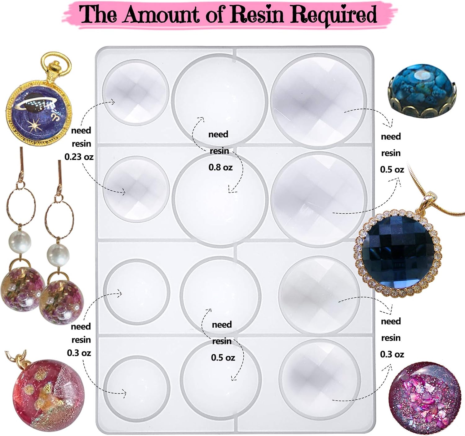 FUNSHOWCASE Cabochon Gem Resin Silicone Molds for Cake Decoration, Polymer Clay, UV Epoxy Urethane Polyresin Jewelry Making, Faceted and Round Domes Set of 2 Trays Circle Diameter 0.2-2.3inch