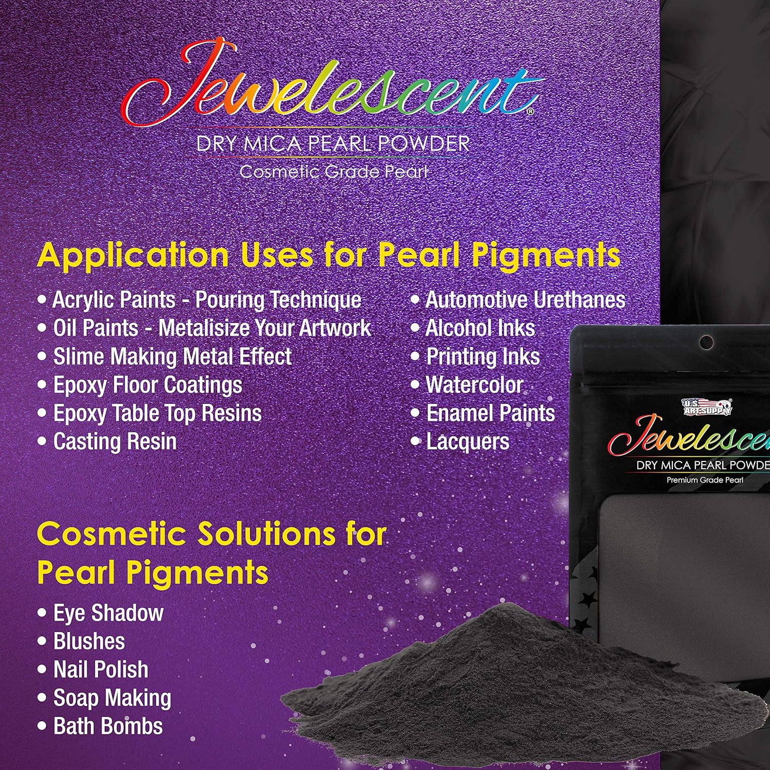 - (24 Colors) Large 3.5oz (100g) Pouches: Features Jewelescent Dry Mica Pearl Powder Pigment in a resealable, easy-pour pouch. This comprehensive collection features a full spectrum of unique colors, from Luster White to Midnight Black.