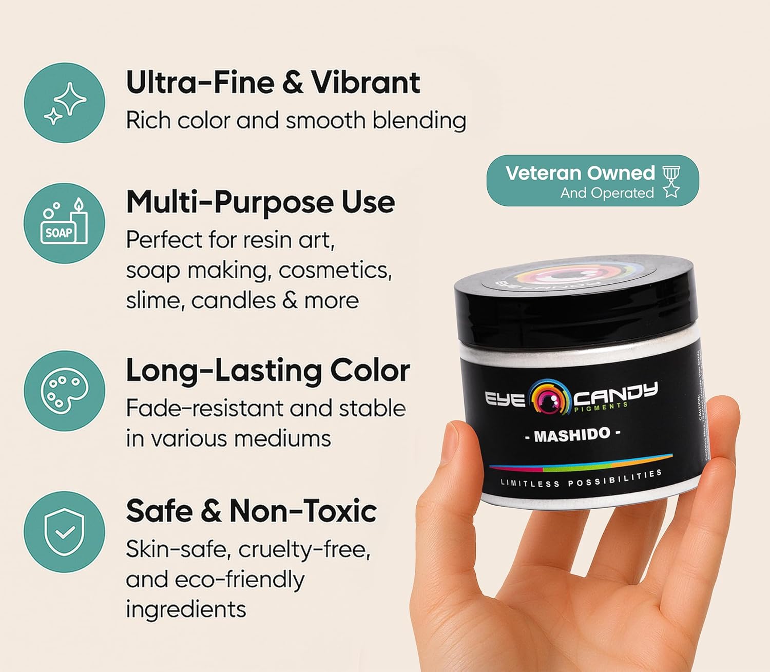 Eye Candy Pigments Premium White Mica Powder - Mashido (50gr) - for Epoxy, Resin, Soap, Paint, Woodworking, Acrylic Pouring, Bath Bombs, Fishing Lures - DIY Arts and Crafts Additive