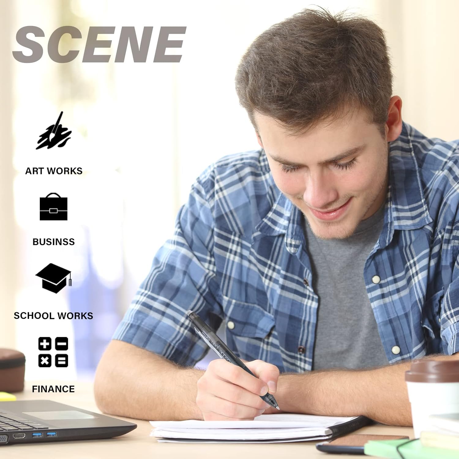 - 12 Black, Retractable Design: 12 black pens with 0.7 mm fine point tip; Smooth writing gel ink: nontoxic, acid-free, non-bleeding, heat erasable; Eraser is on the top of the pen; the pen is retractable by pressing the side clip down