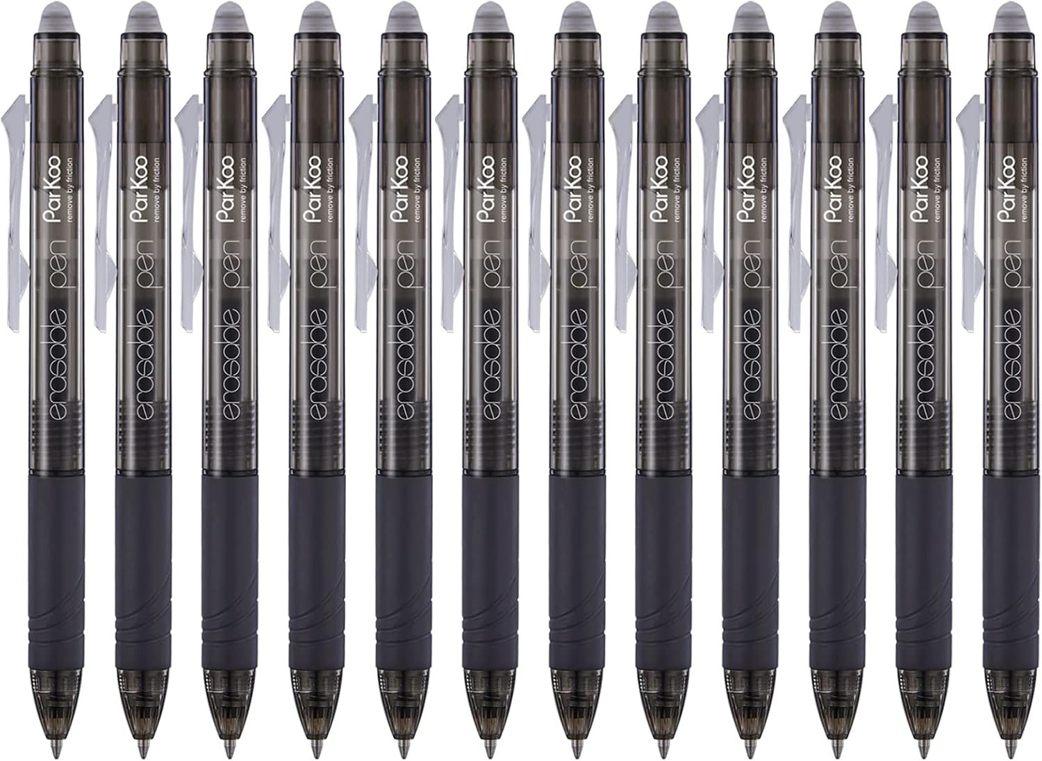 ParKoo Retractable Erasable Gel Pens Clicker Fine Point 0.7 mm, No Need for White Out, Black Ink for Completing Sudoku and Crossword Puzzles, 12-pack