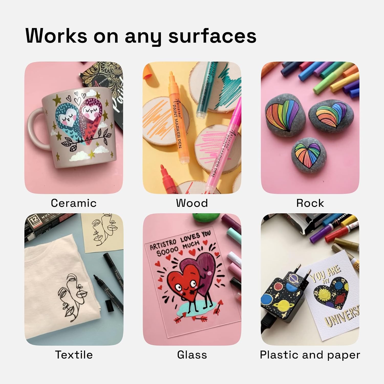 - EXTRA FINE TIP: The 0.07mm tip on each paint pen is perfect for adding labels and highlighting. Each acrylic paint pen is perfect for outlining, lettering, or creating cards. Acrylic paint markers are perfect for kids or adults, pros or beginners.