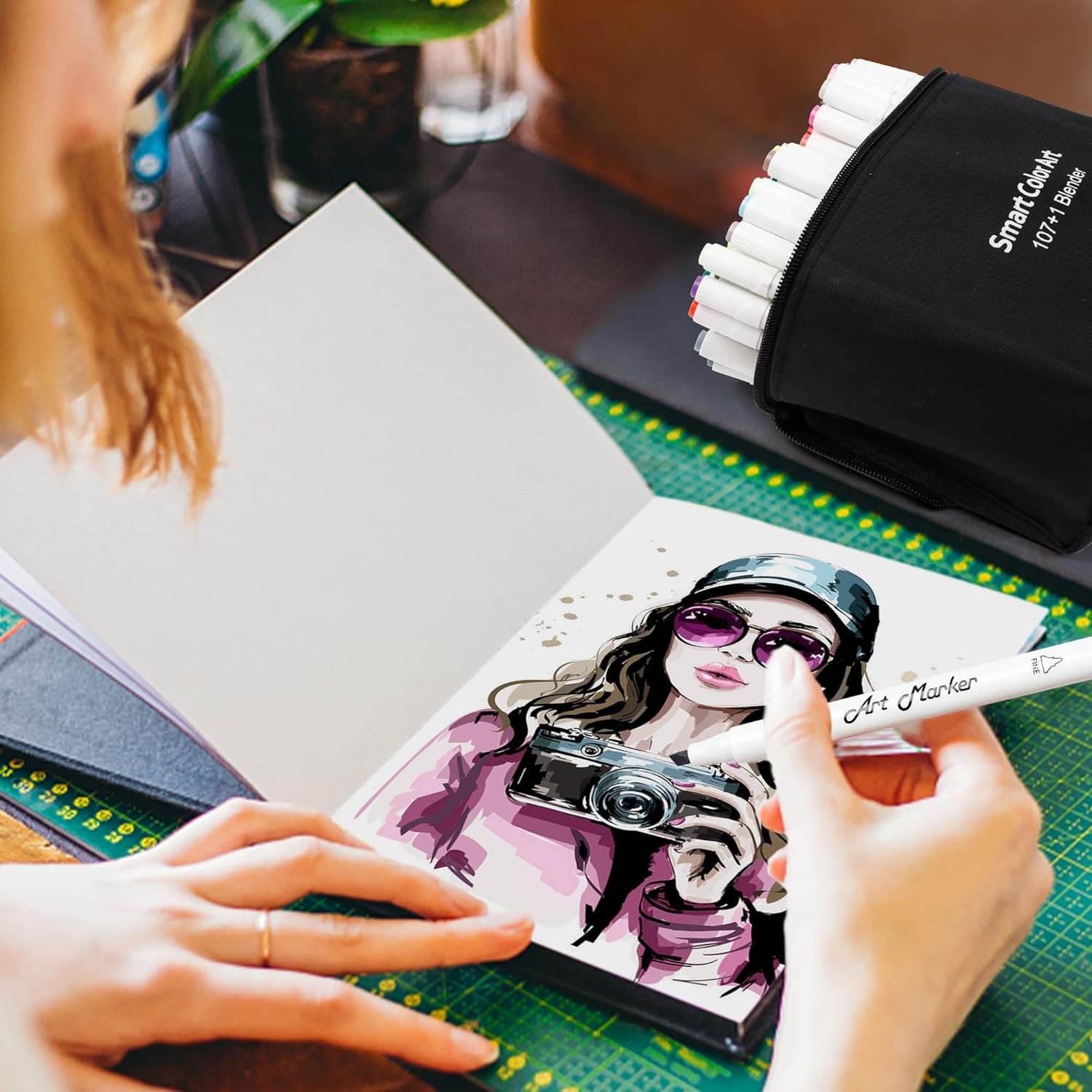 - Smart Color Art 108 Pack Art Markers Provide You With Large Ink Volume, Which Is Excellent For Use On Cloth, Paper, Glass, Ceramics and so on. The Markers Are Wrapped In A Black Zip Up Case. Easy To Use As Well As To Carry!