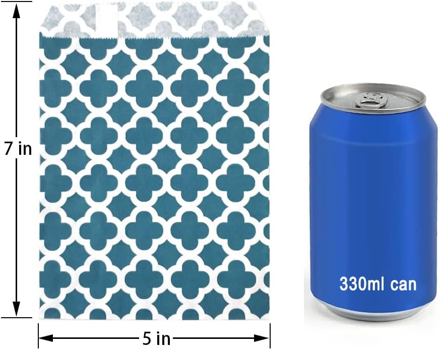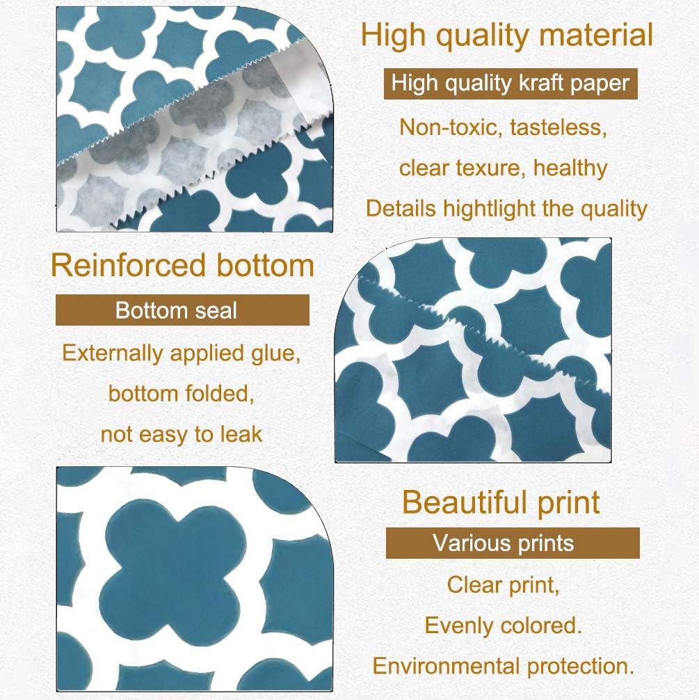 - Package: 200 pcs candy paper bags with two or four different patterns (in the first picture). A pack of lightweight and strongly made small paper treat bags
