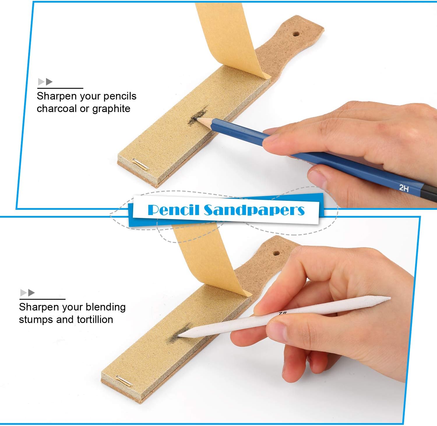 - ✎PACKAGE INCLUSION: The package includes 16 pieces of blending stumps, the sizes are #1, #2, #3, #4, #5, #6, #7 and #8, two pieces for each size; 2 sandpaper sharpen pads blocks, 2 kneaded erasers, 1 pencil extension tool and 1 felt bag.