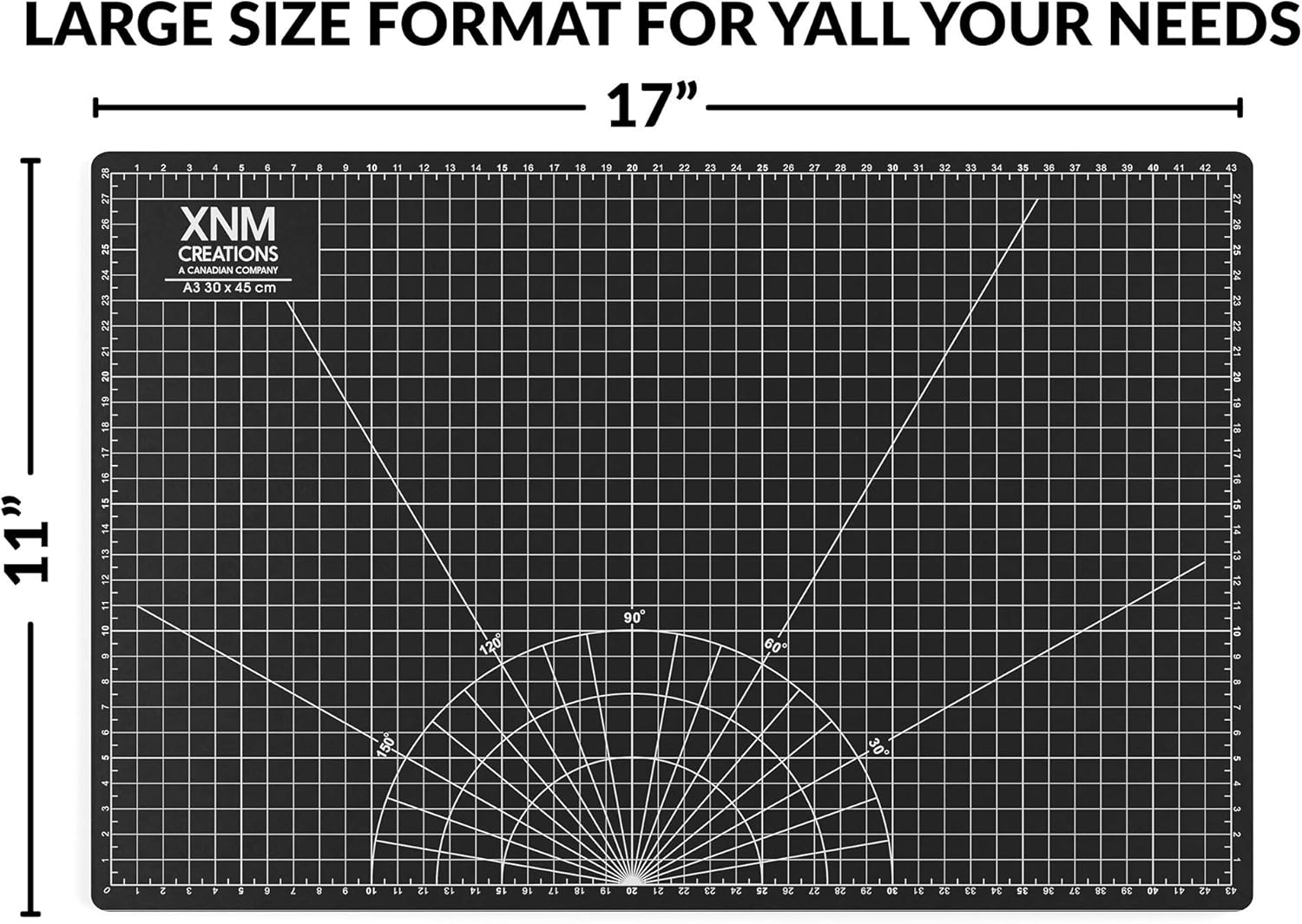 XNM Premium Self Healing Cutting Mat - 12 Inches by 18 inches - A3, 3 Layer Quality PVC Construction - Dual Sided, Imperial and Metric Grid Lines - Perfect for Cutting, Sewing, and Crafts