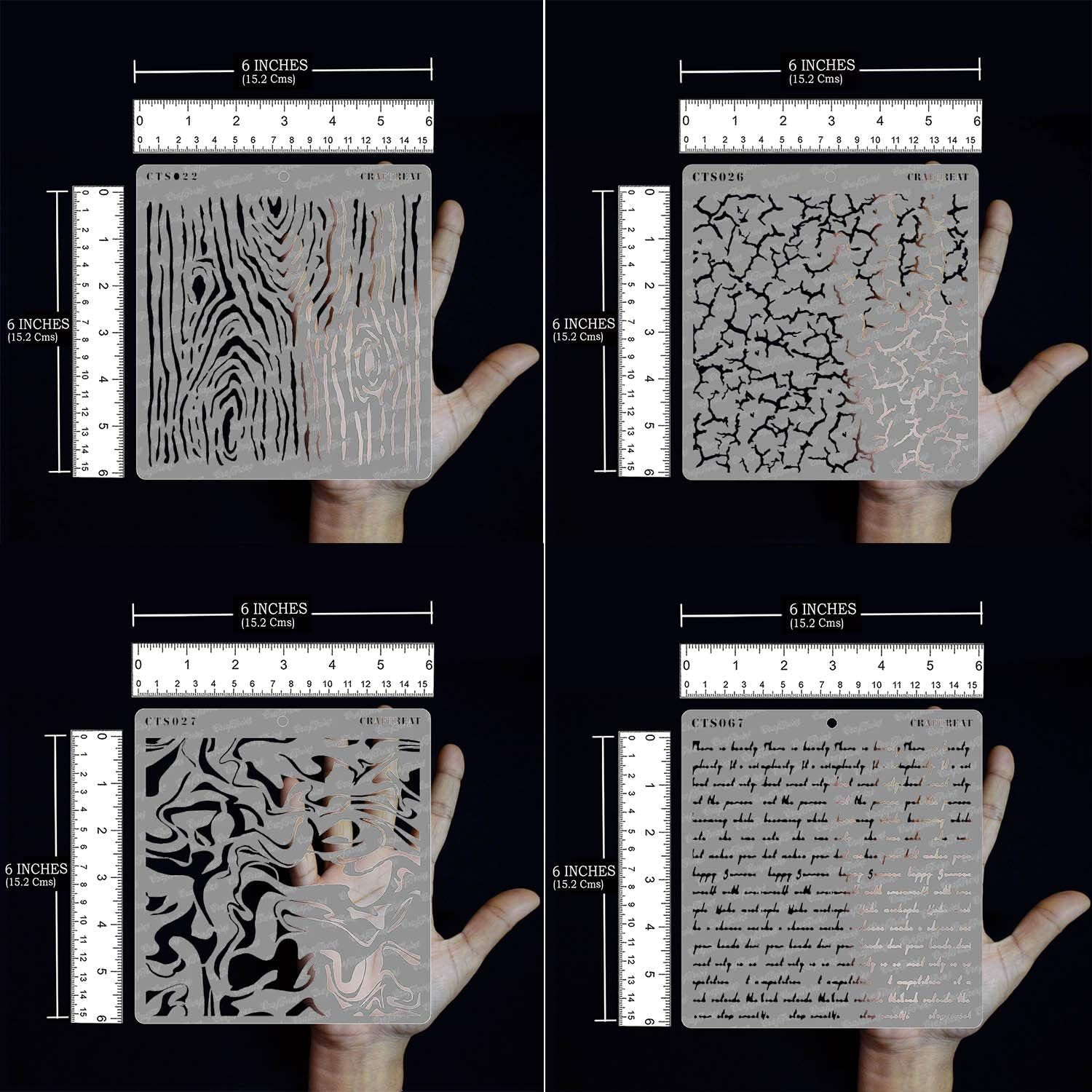 CrafTreat Reusable Pattern Stencils for Painting on Wood, Canvas, Paper, Fabric, Floor, Wall and Tile - Woodgrain, Crackle, Marble and Script - 4 Pcs - 6x6 Inches Each - DIY Art and Craft Stencils