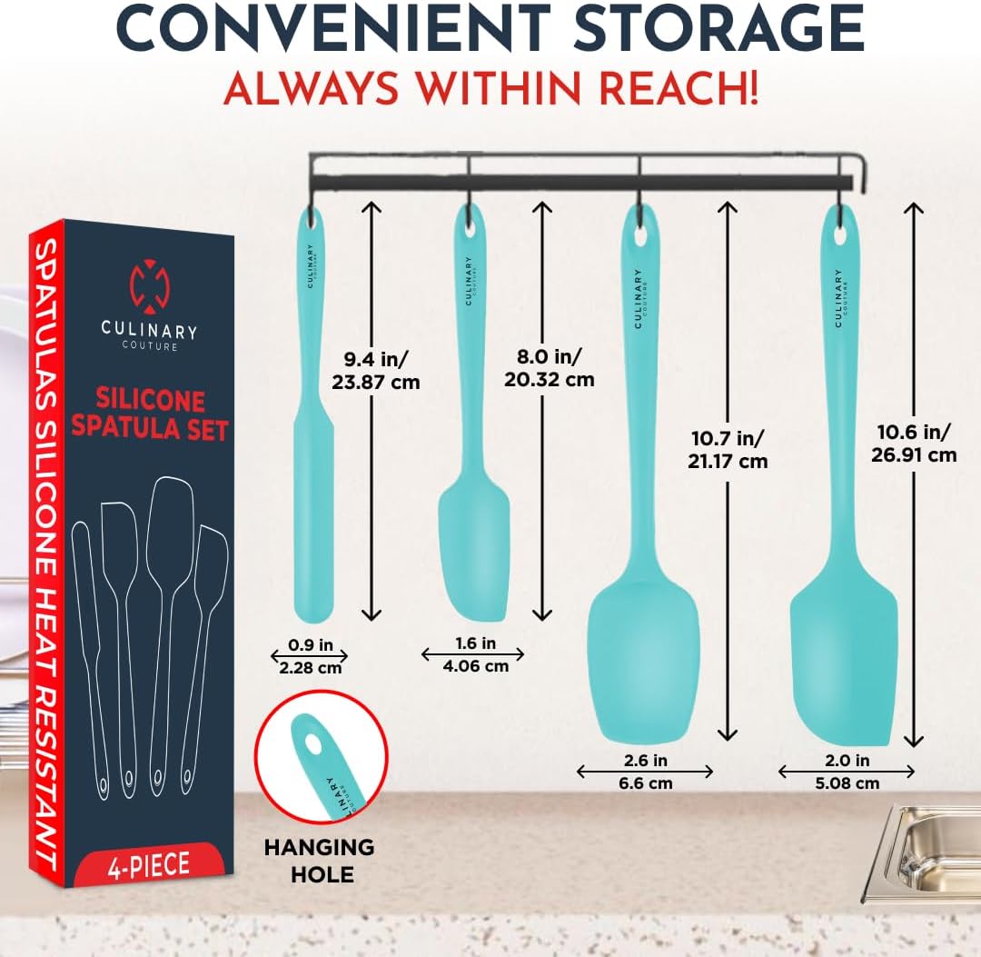Culinary Couture 4-Piece Aqua Baking Spatula Set - Rubber Spatulas Silicone Heat Resistant, BPA-Free - Spatula Set for Nonstick Cookware - Silicone Baking Utensils