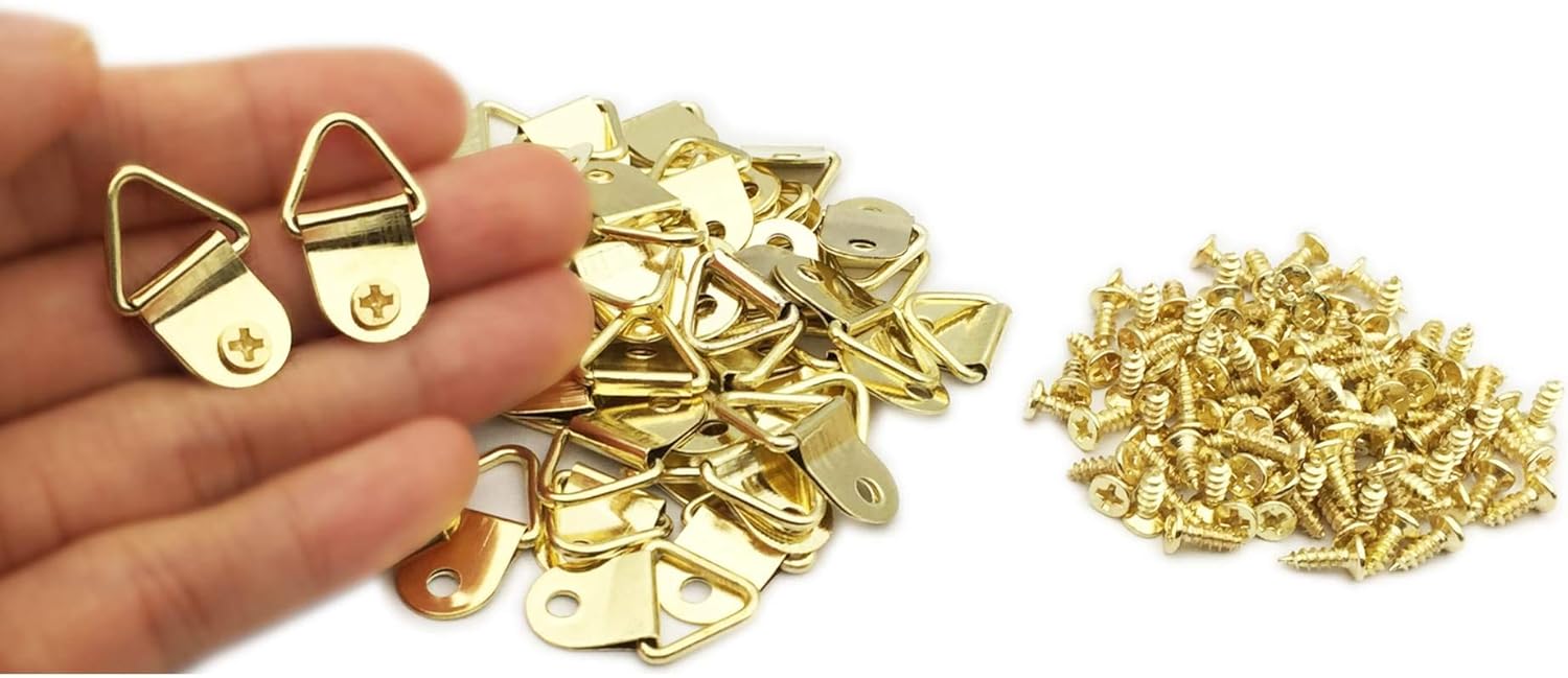 100 Pack Small Triangle Ring Steel Picture Hangers with Screws Picture Frames Picture Hang Solutions for Hanging Clock Paintings Artwork Picture Frame Hook Photos(Gold)