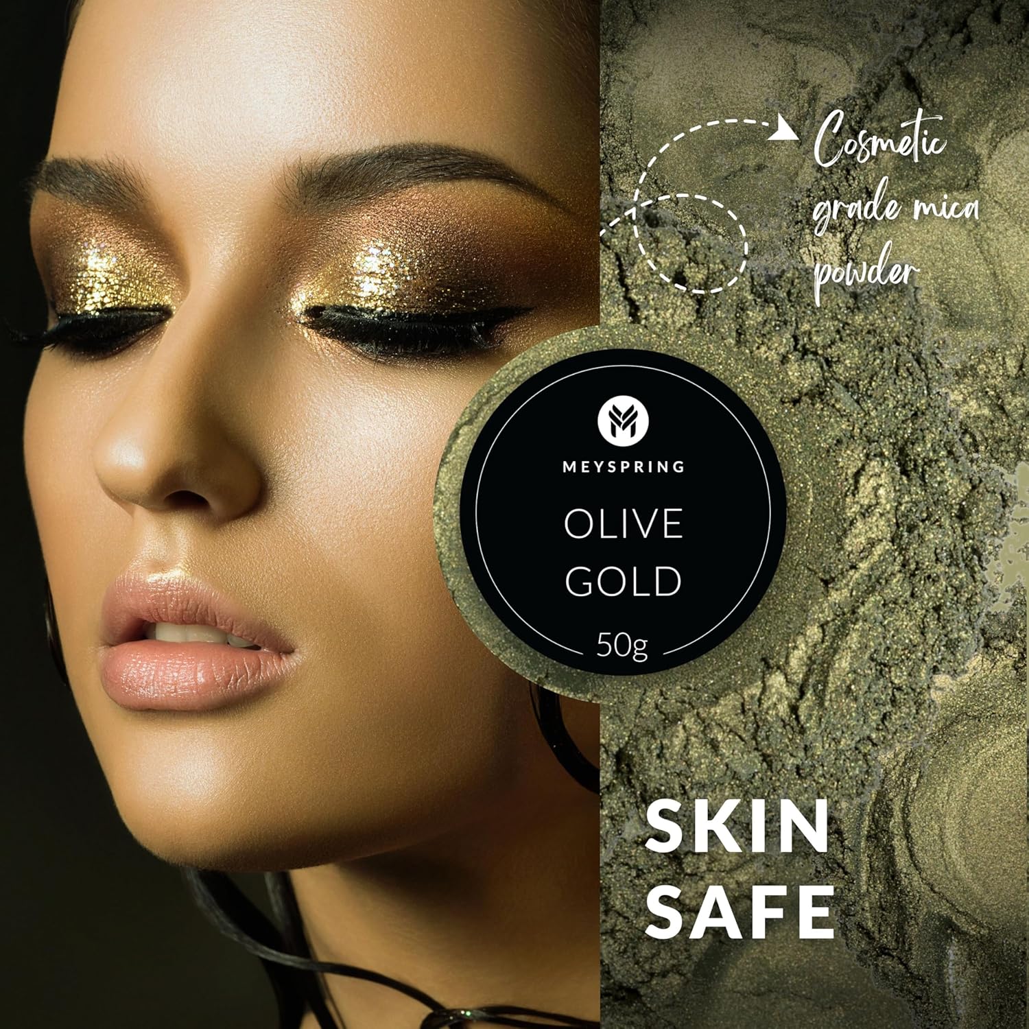- SAFE, NON-TOXIC, CRUELTY FREE β MEYSPRING Olive Gold and all our mica pigment powders are stain-free, gentle on skin, and wonβt cause irritation. As with any additive, always test a small area before full use to ensure itβs allergy safe.