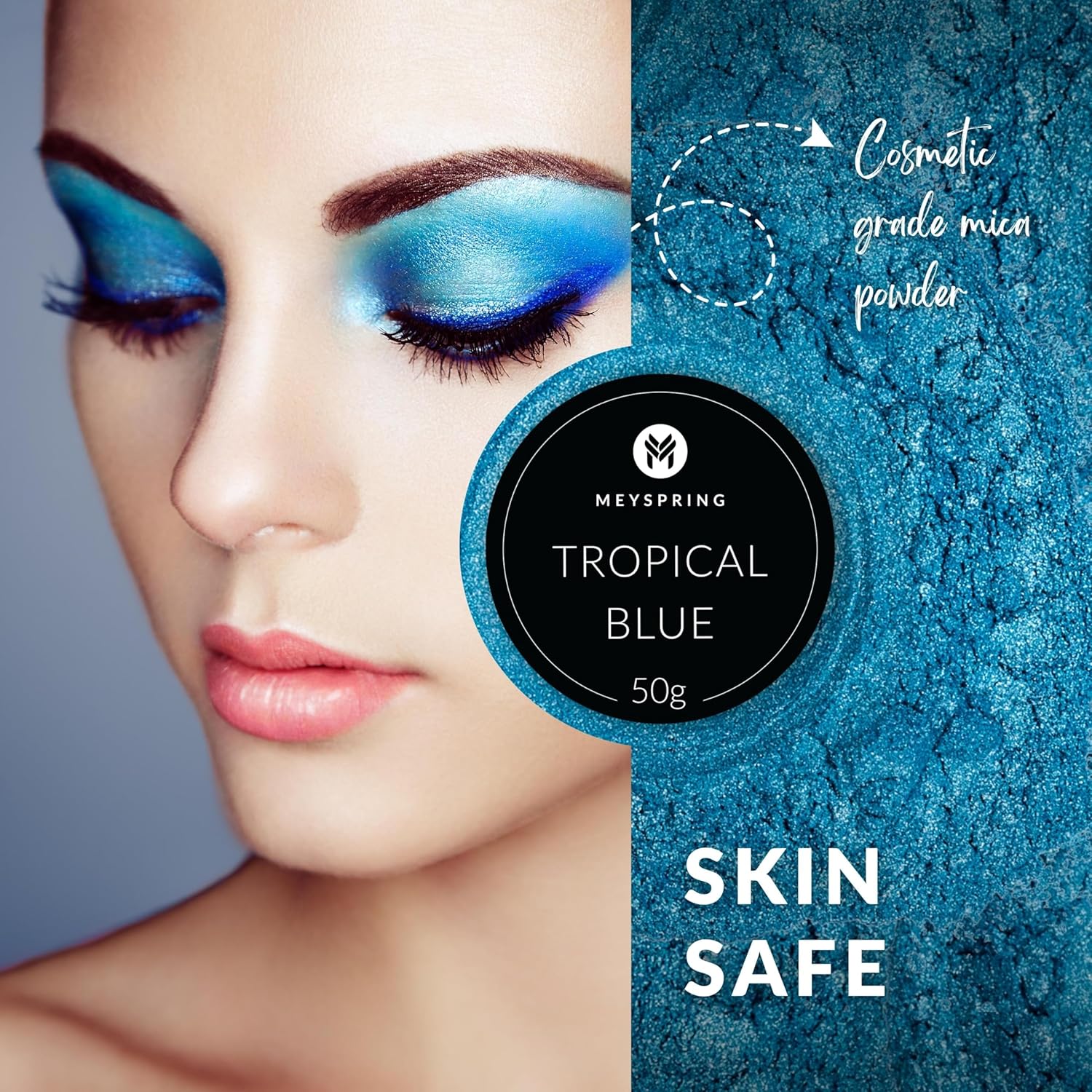 - MICA POWDER COSMETIC GRADE β Our Tropical Blue mica powder is also great for makeup purposes. It can be used for tinting, darkening, or brightening other mica pigment powder making it ideal for use as a mineral makeup ingredient.