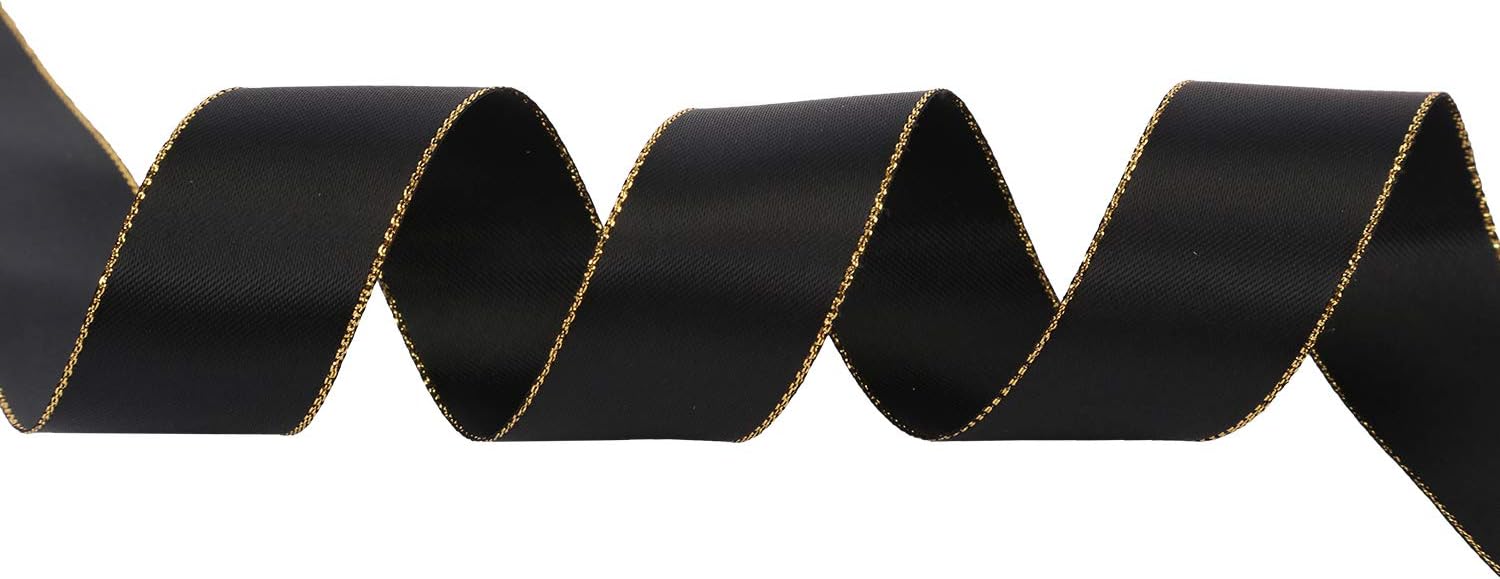 ITIsparkle 1" Inch Double Faced Satin Ribbon 25 Yards with Gold Edges, 1" X 25Yd - Black