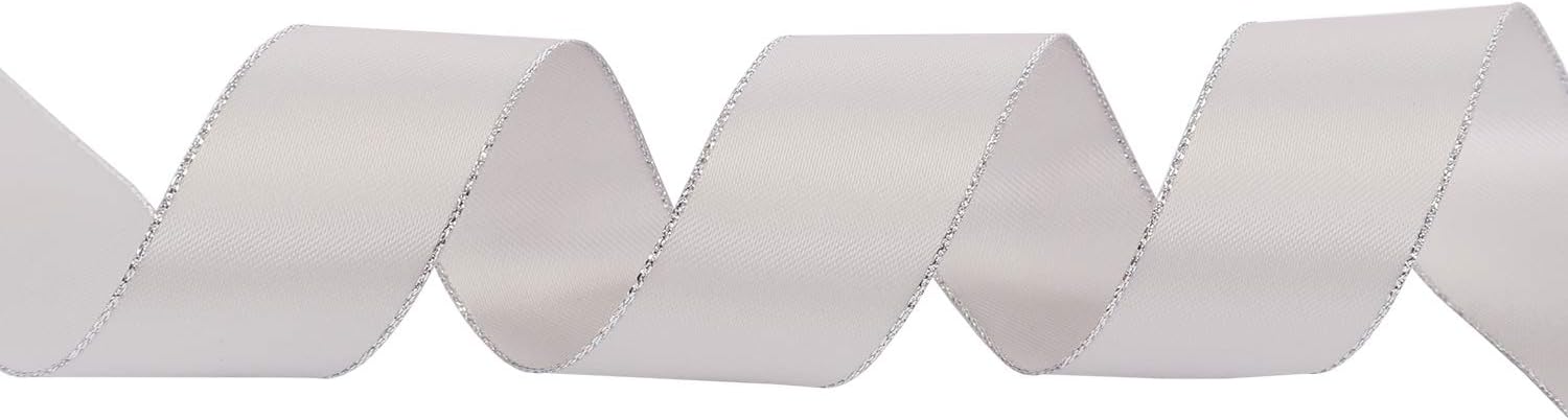 ITIsparkle 1" Inch Double Faced Satin Ribbon 25 Yards with Silver Edges, 1" X 25Yd - Shell Grey
