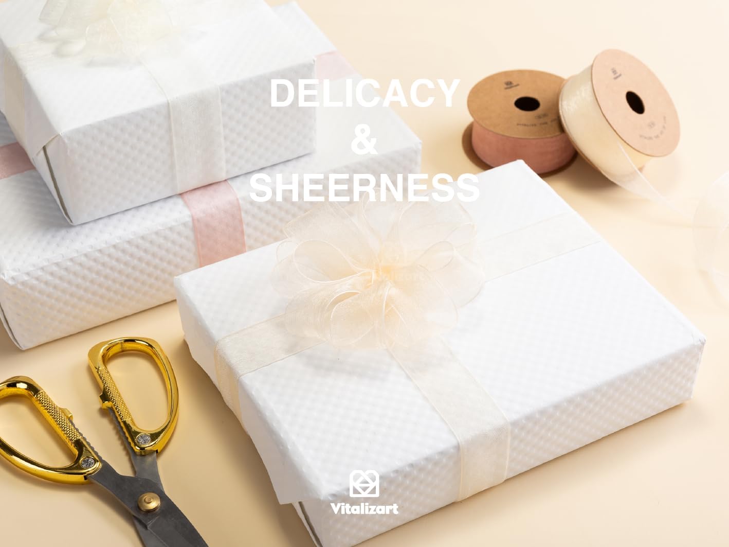 - Beautiful sheer ribbon with a touch of delicacy in its translucent appearance.