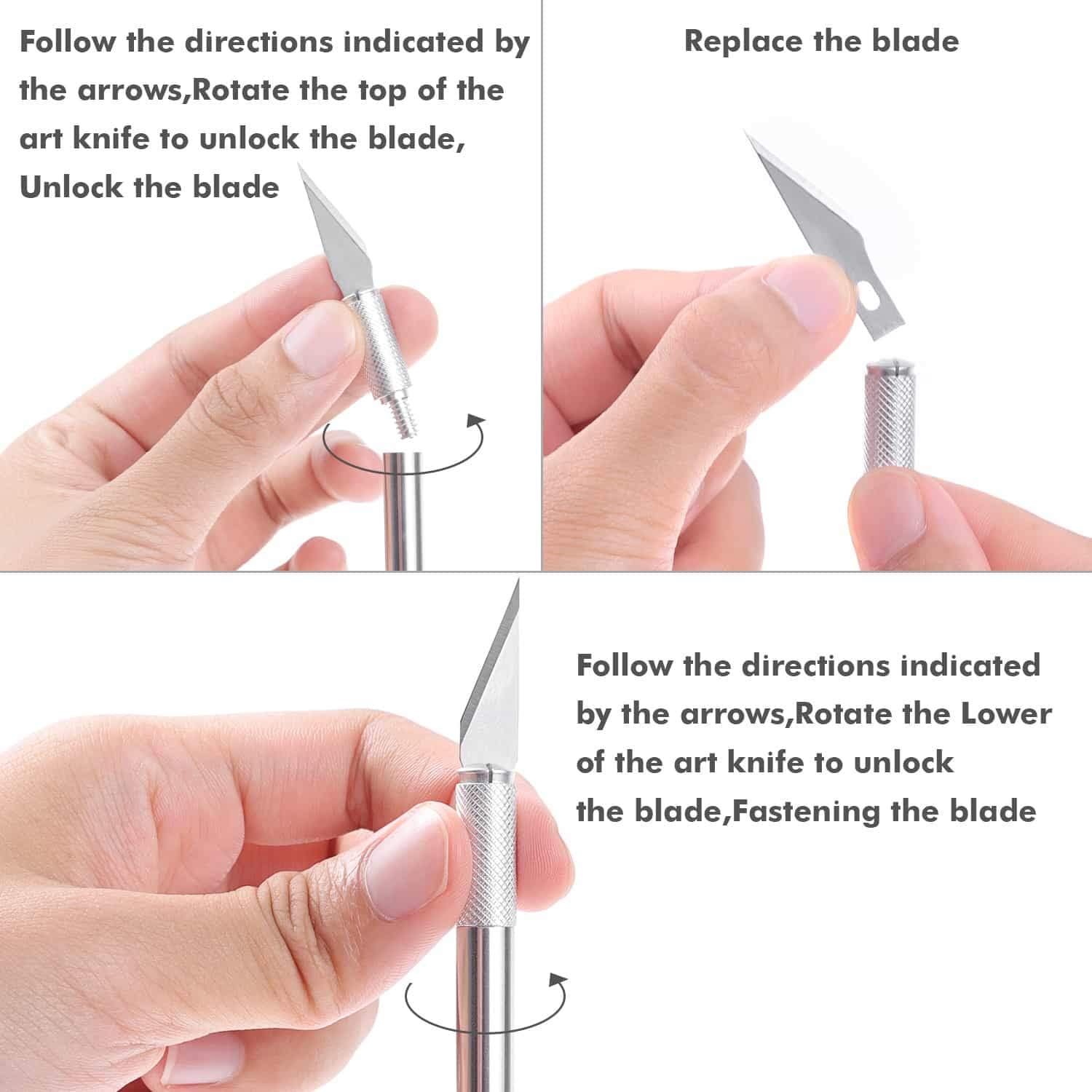 - 【SHARP AND DURABLE ART KNIFE FOR PRECISE CUTS】This precision knife is consist of anti-skidding aluminum handle, #11 fine point blade and safety cap. Also comes with 30pcs spare SK-5 steel blades that pack with plastic case to keep the blades safe and lubricated. The SK-5 high carbon steel blades good for smooth and precise cutting without tears and rips the papers and projects