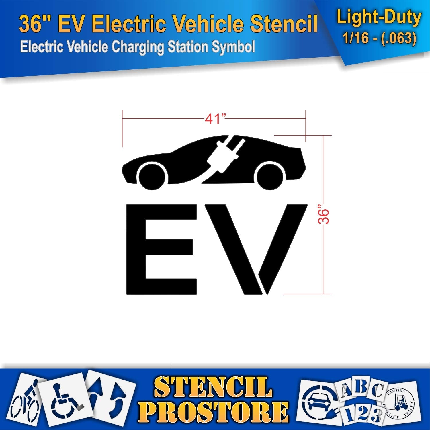 Pavement Stencils - 36 in - Electric Vehicle Silhouette with Plug and EV Letters - 35'' x 41'' x 1/16" (63 mil) - Light-Duty