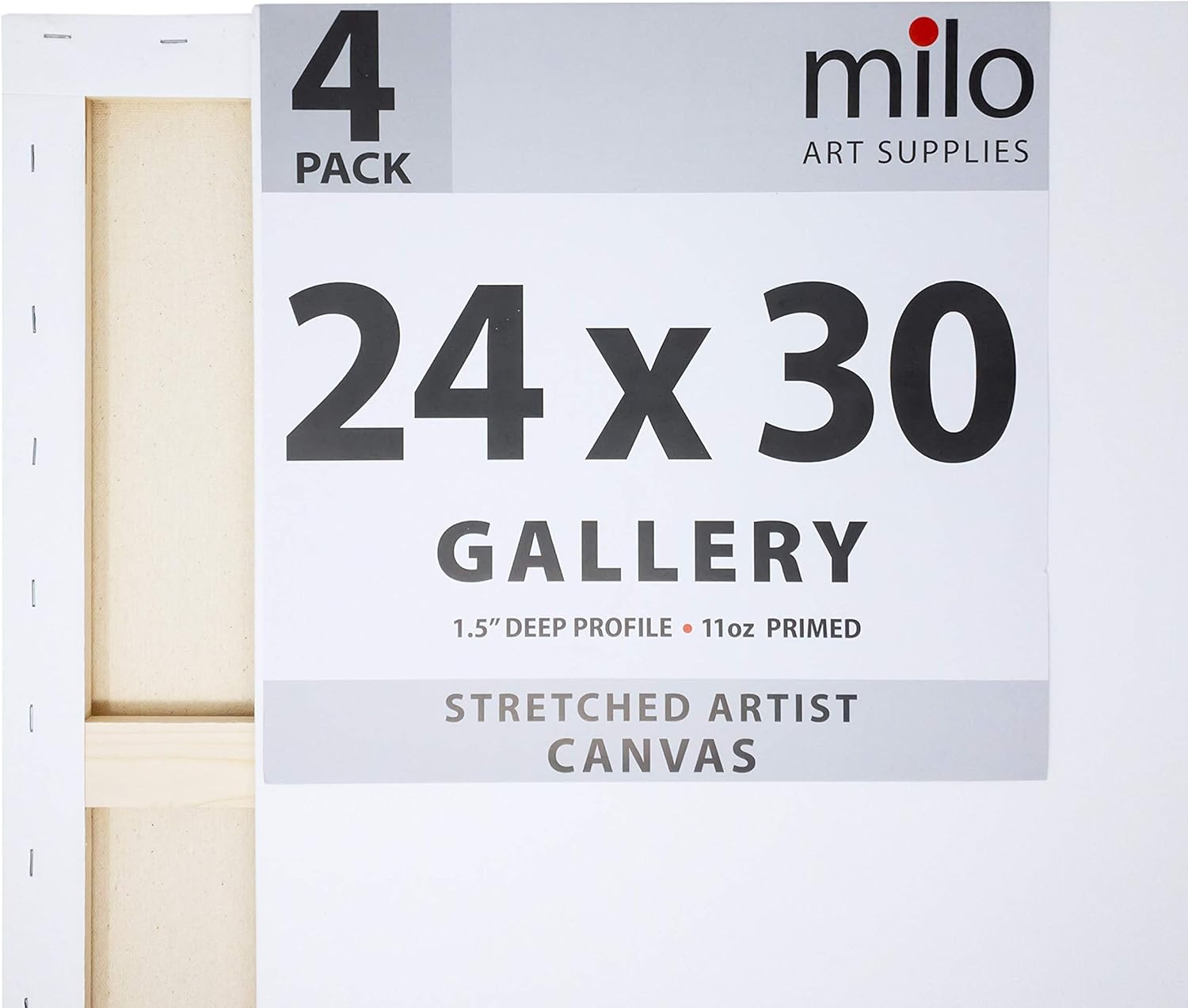 milo Stretched Artist Canvas | 24x30 inches | 4 Pack | 1.5” inch Thick Gallery Profile | 11 oz Primed Large Canvases for Painting, Ready to Paint Art Supplies for Acrylic, Oil