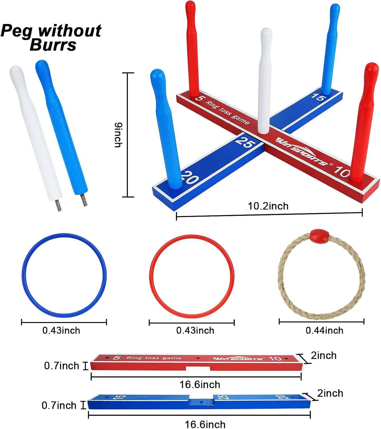 Premium Wooden Ring Toss Game Set - Win SPORTS Throwing Game Indoor Outdoor Games for Kids & Adults,Includes Wood Base,Fun Family or Friends Game