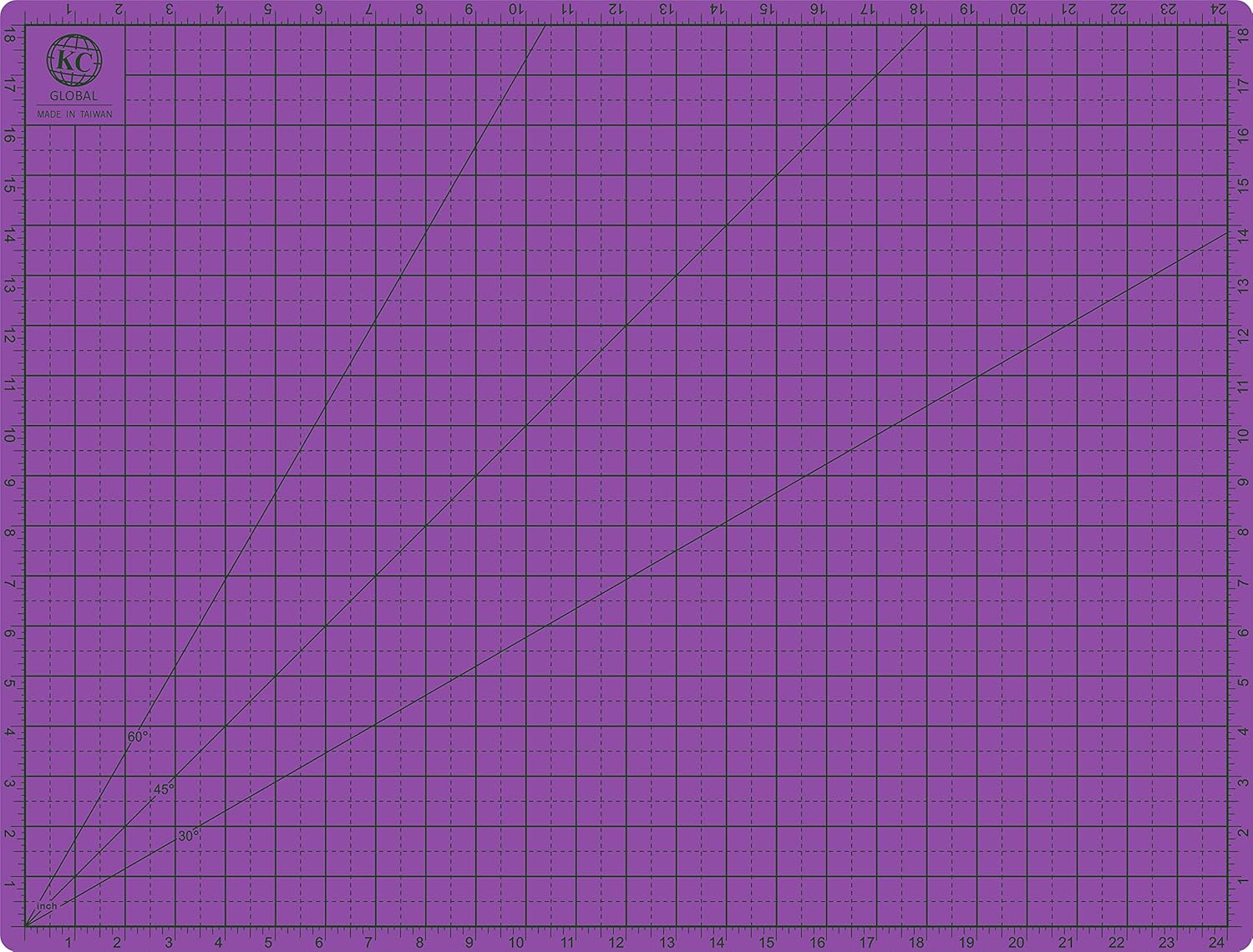 - β PRECISE ROTARY CUTTING GRID printed clearly on double sided with 30Β°, 45Β°- and 60Β°- degree measuring grid and inches at the edge of the mat. White/black printed guides are perfect assistant for measuring accurately and the beautiful bright base color will bring joy and energy to your sewing workbench