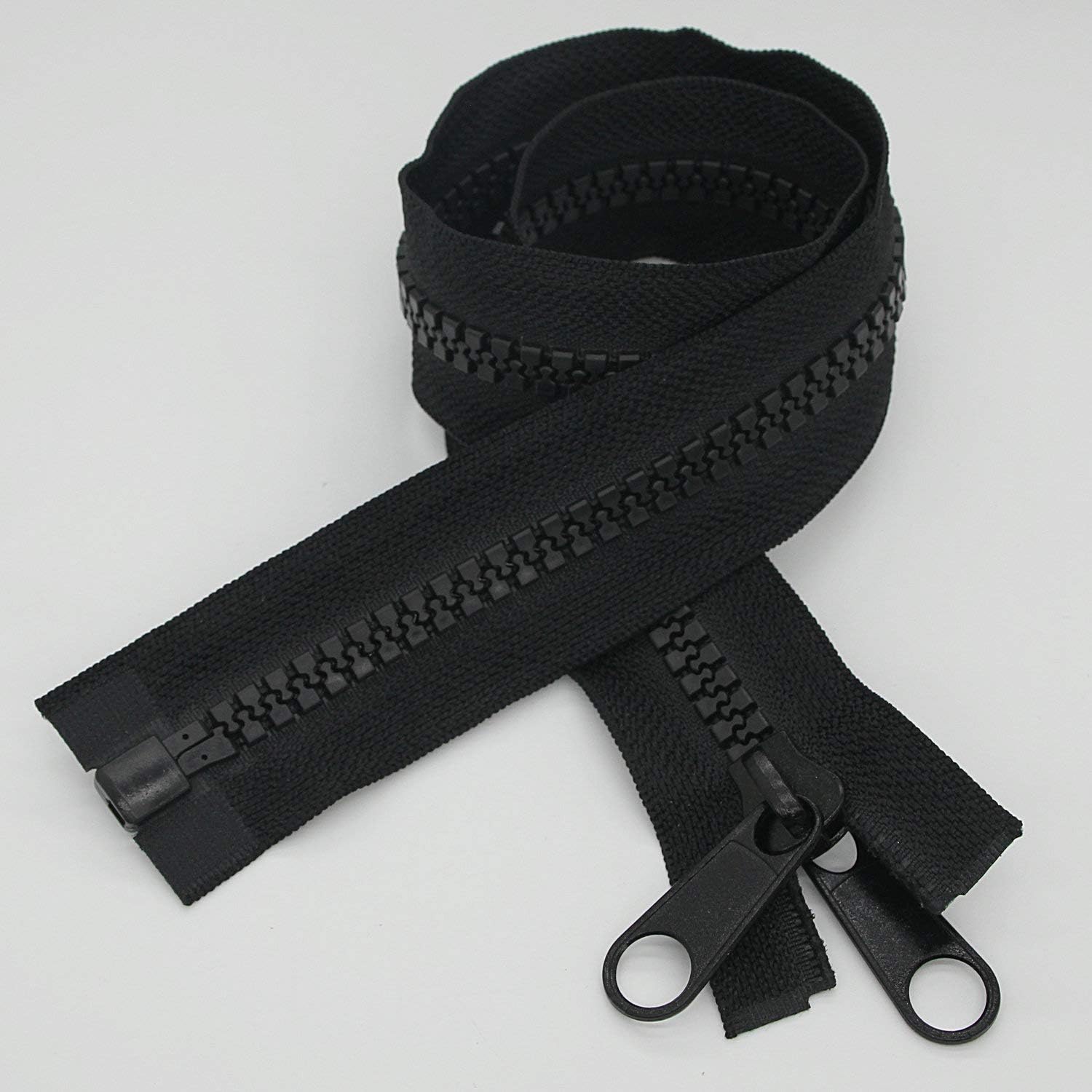 - #10 large black Heavy Duty plastic zippers with enameled metal double tab slider, it is openable from both sides
