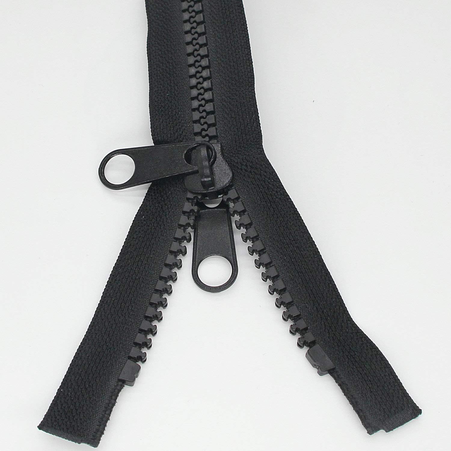 - #10 large black Heavy Duty plastic zippers with enameled metal double tab slider, it is openable from both sides