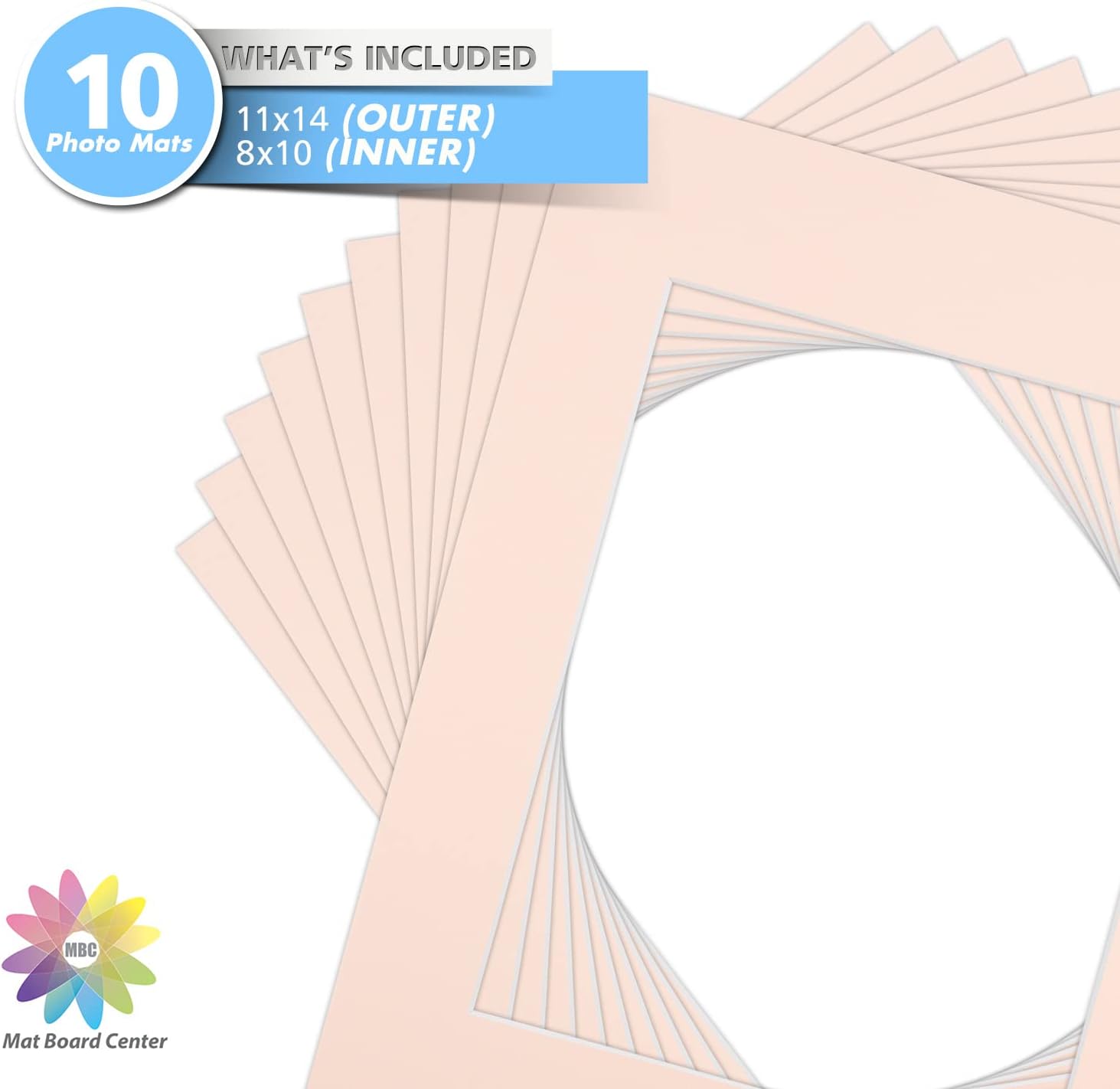 Mat Board Center, Pack of 10, 11x14 for 8x10 Pink Color Mats - Bevel Cut, Acid Free, 4-ply Thickness, White Core - for Pictures, Photos, Framing