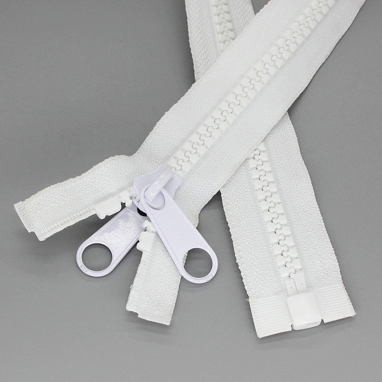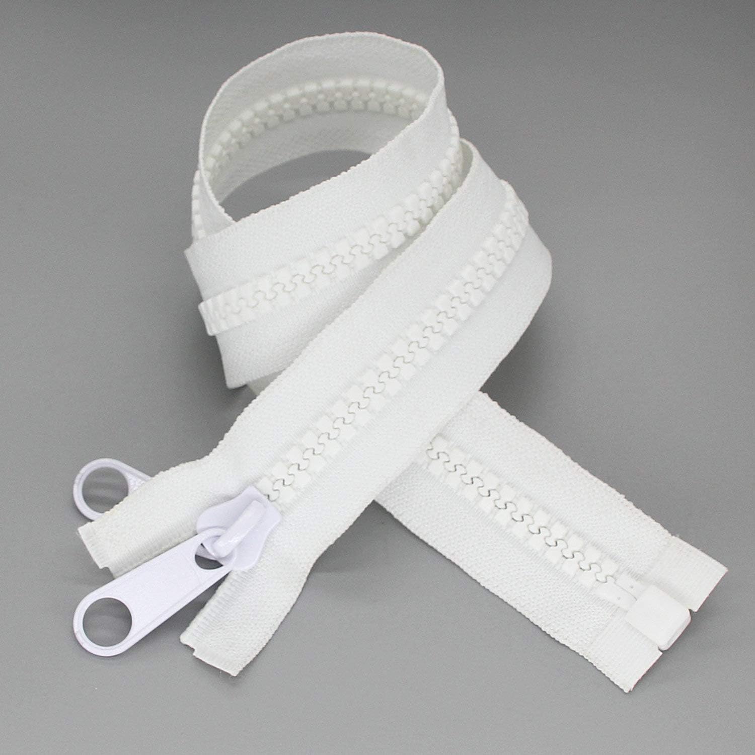 - #10 large White Heavy Duty plastic zippers with enameled metal double tab slider, it is openable from both sides