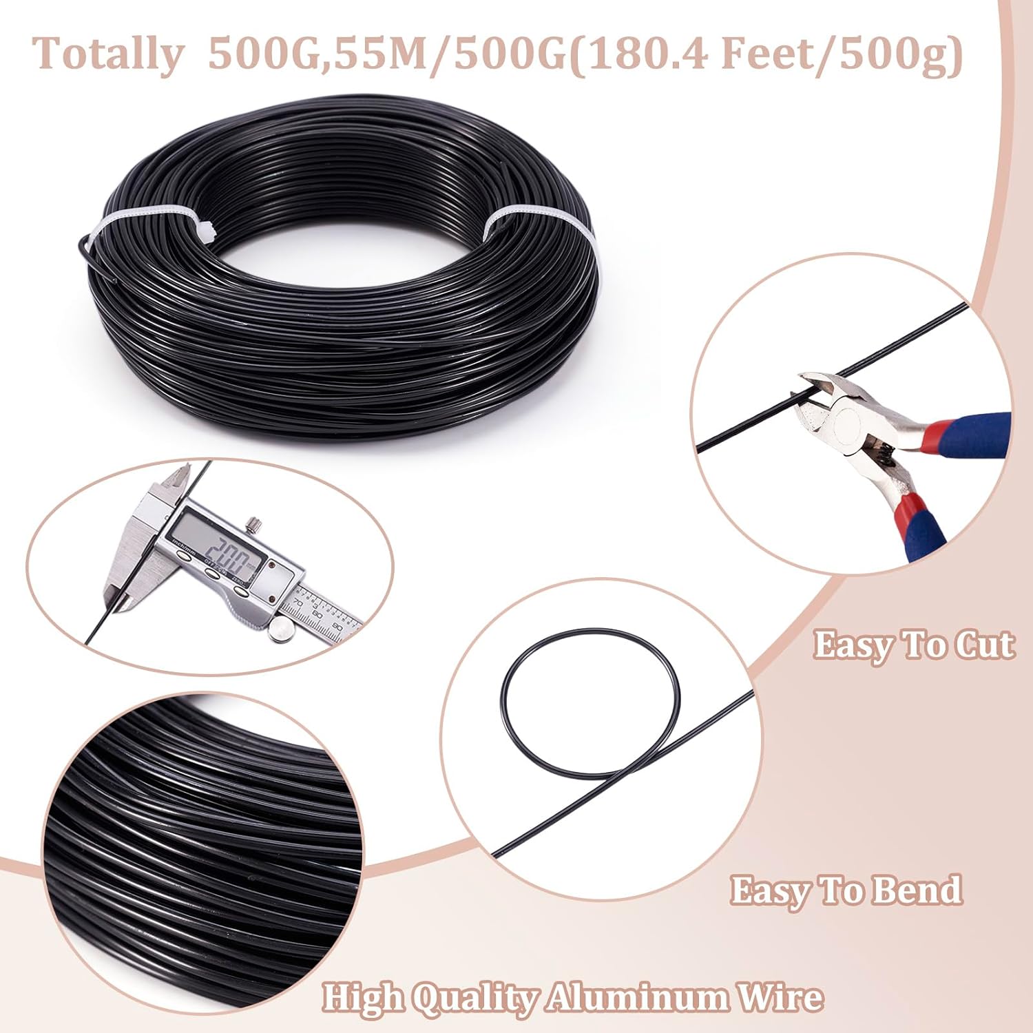 Fashewelry 180 Feet 12 Gauge Aluminum Wire Black Bendable Metal Craft Wire for Beading Jewelry Craft Making