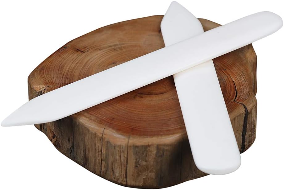 WUTA Bone Folder Genuine 2Pcs Cattle Bone Paper Creaser Scrapbooking Tool for DIY Handmade Burnishing Bookbinding Cards and Paper Crafts