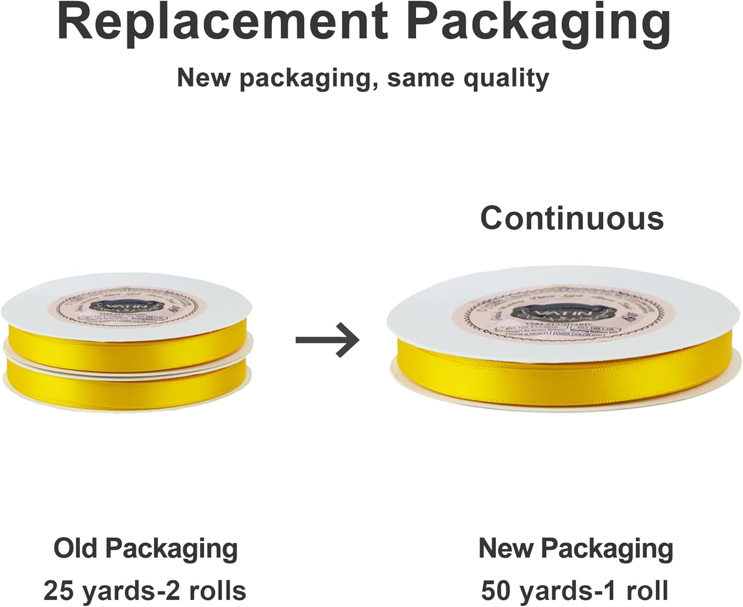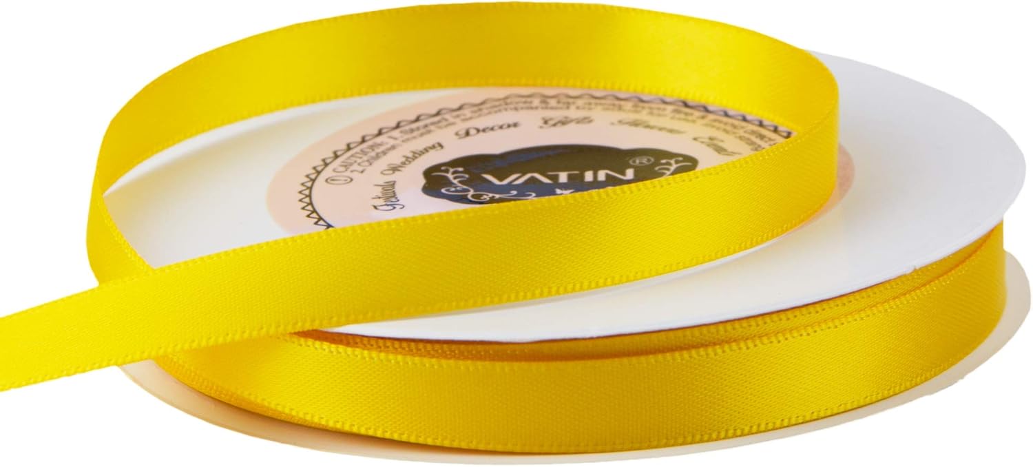 VATIN 3/8 inches Double Faced Maize Yellow Polyester Satin Ribbon - 50 Yards for Gift Wrapping Ornaments Party Favor Braids Baby Shower Decoration Floral Arrangement Craft Supplies