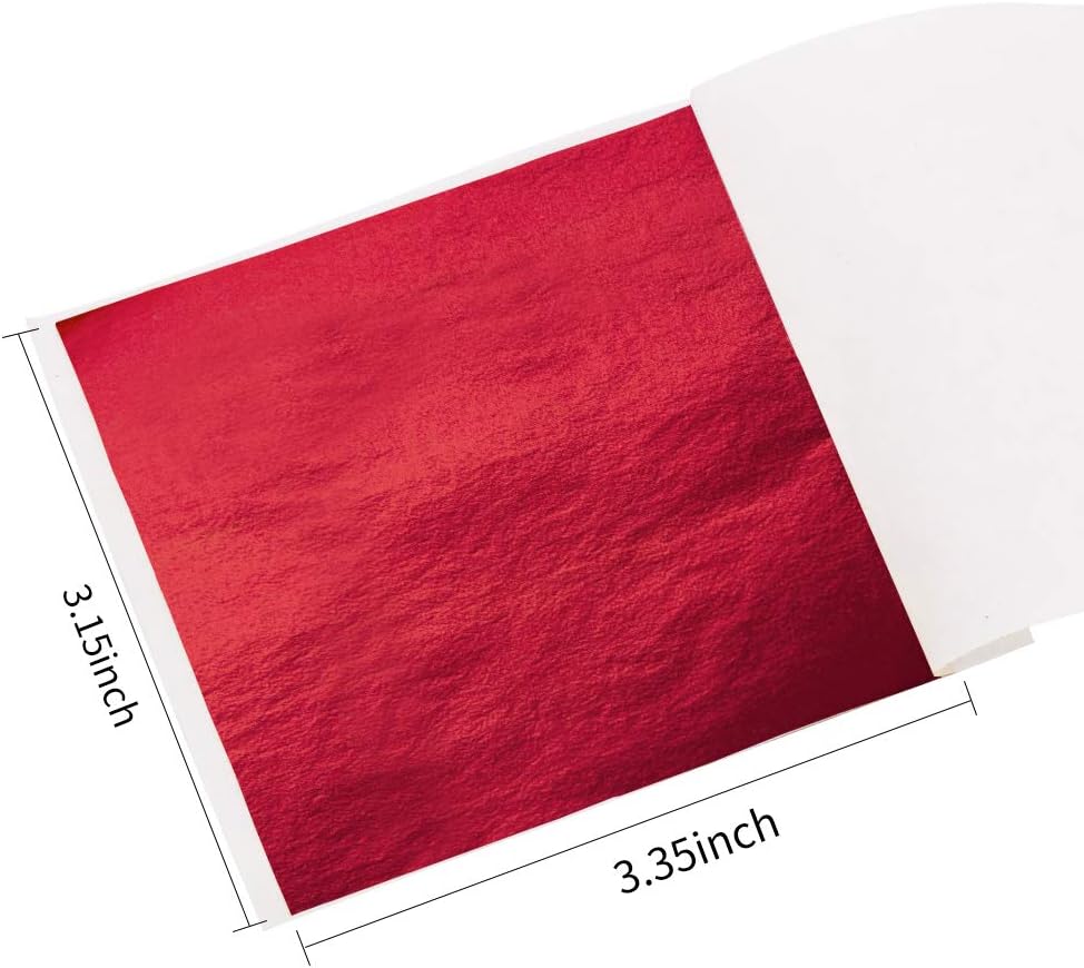 KINNO 100 Sheets Imitation Gold Foil Sheets - Leaf Paper for Arts Decoration, Sculpture, Gilding, Nails, Handcrafts, Picture Frames, Paintings, Furniture, Wall (red)