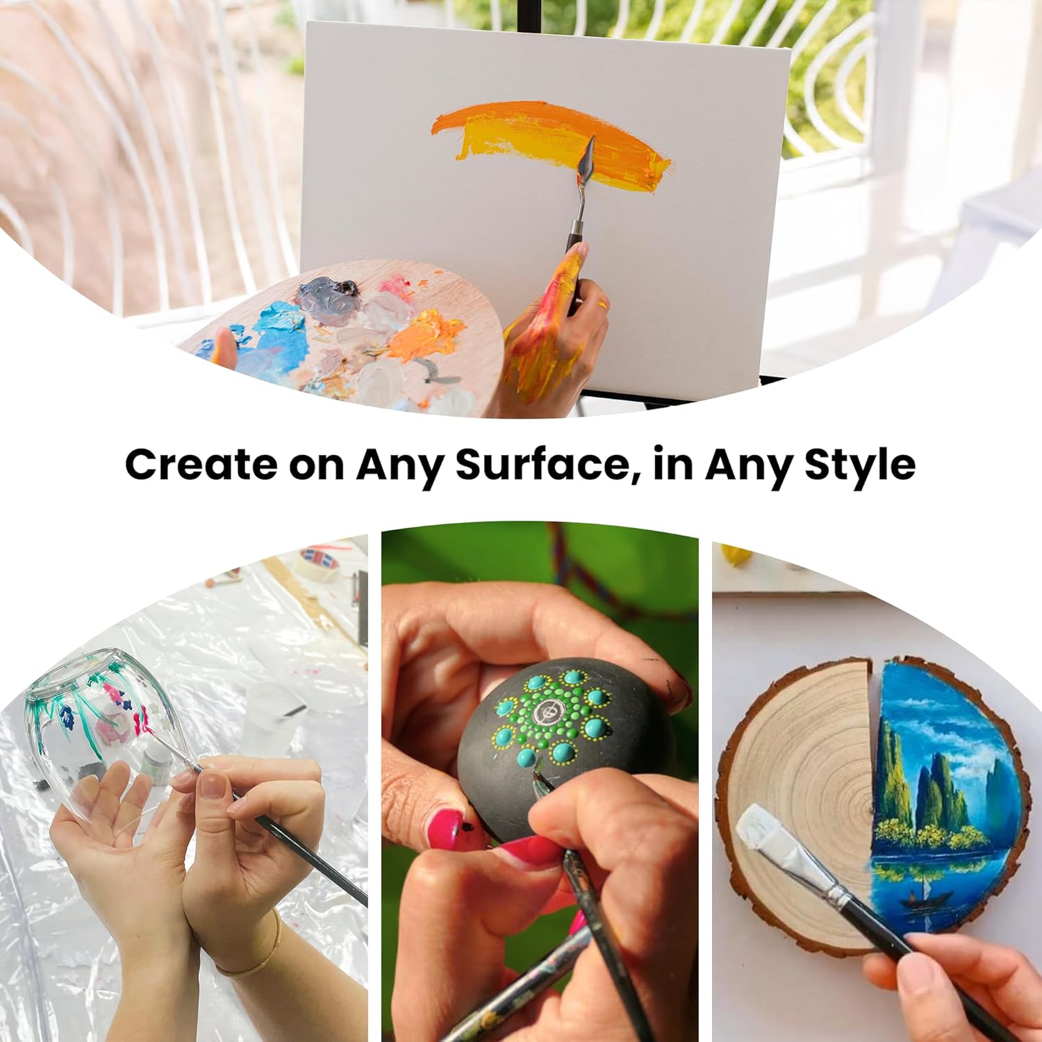 - FAST DRYING & LONG LASTING: If you are starting to paint this then this Artistik acrylic paint set will change your definition of art. You can easily mix paints for color, and the possibilities are endless. The secondary and tertiary colors in this kit will last you for a very long time. Perfect for all kinds of paintable surfaces such as cloth, canvas, wood, glass, ceramic, easel, rock painting, and paper with this excellent range of colors