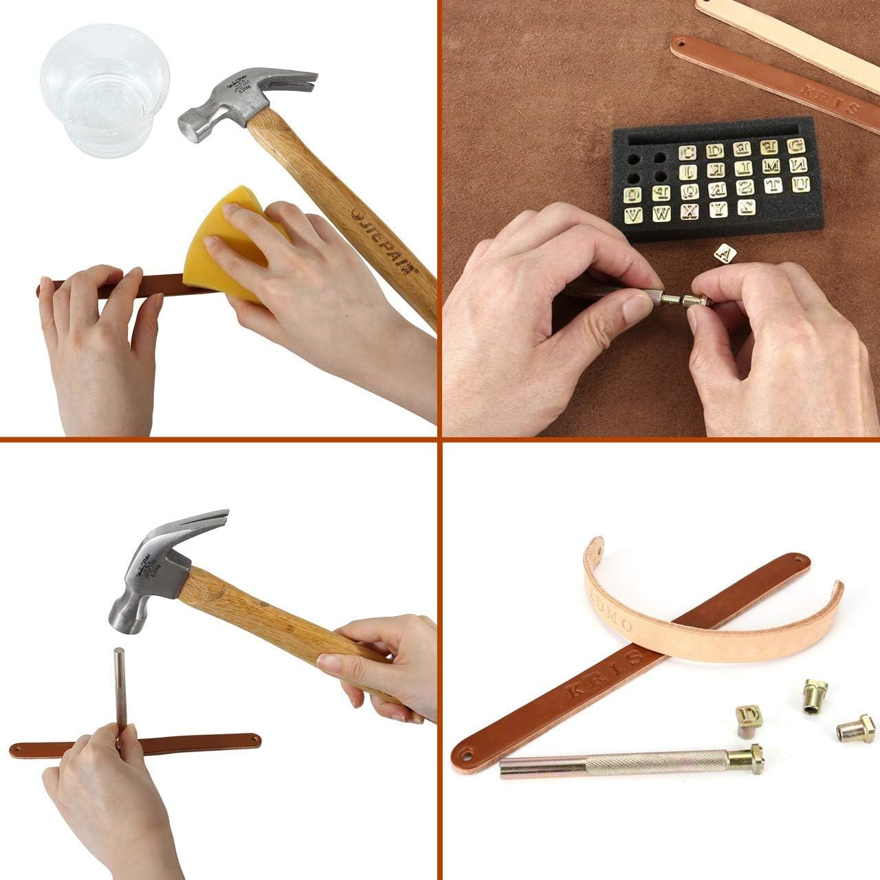 - Usage: Wet the leather with a wet sponge before works,Then use the hammer to hit the end of the handle and control the power, avoid ghosting or surface damage.