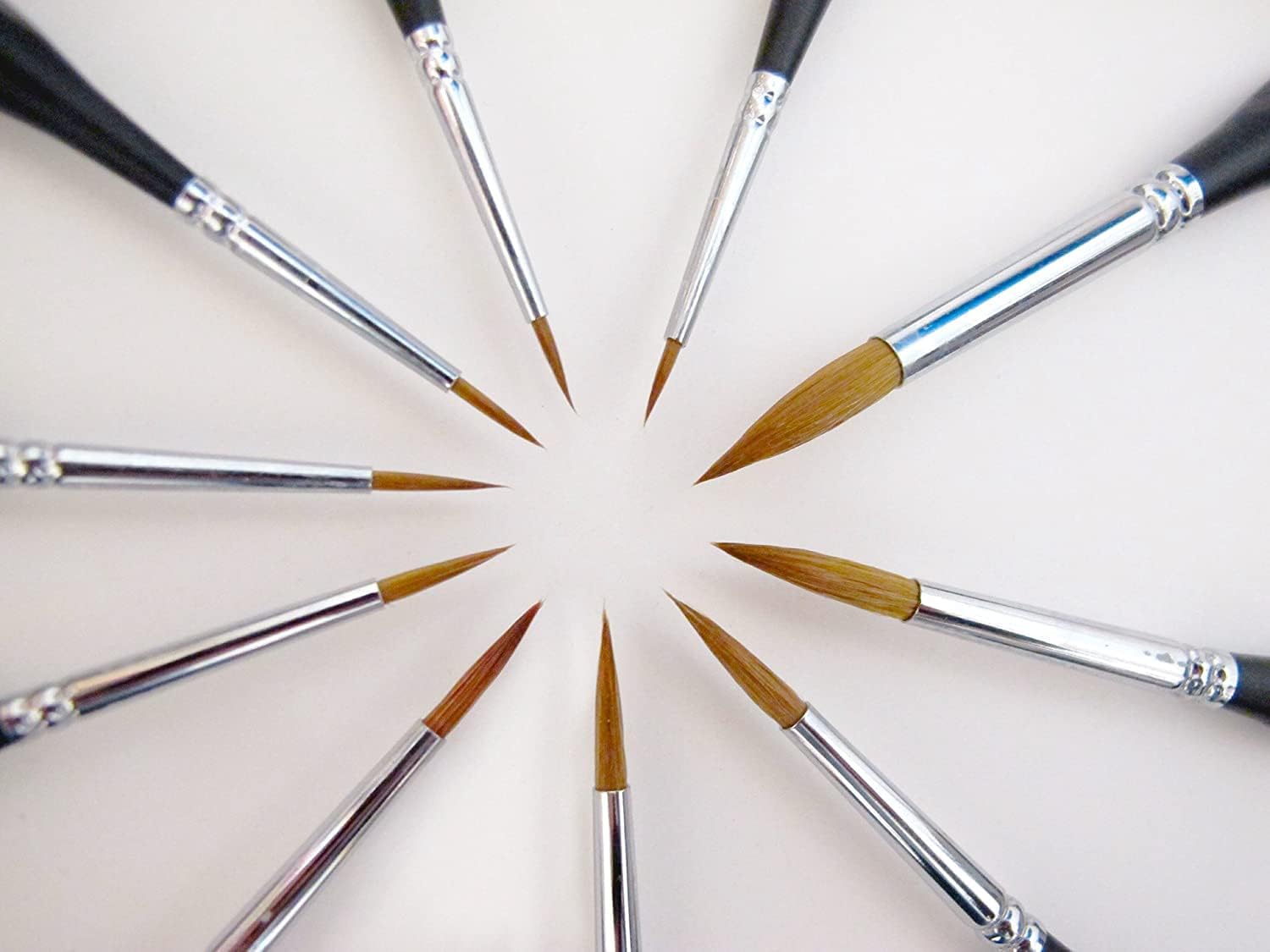 - Multiple Use - These kolinsky brushes are perfect for various kinds of painting for acrylic, watercolors, gouache and oil paintings, miniatures, detailing, craft art painting, model, etc. The smaller brushes, from the 5/0 to size 4 are really popular for miniature. The larger rounds size 6/8 are brilliant for laying on colour.