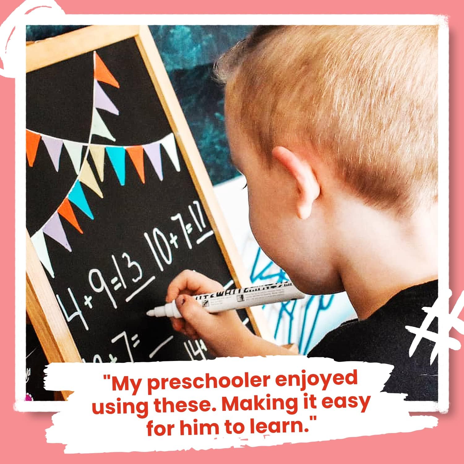- Mess-Free - Set of 6 chalk markers white. Time to replace the old dusty chalk with white chalkboard marker. These white chalk pen are washable, dustless, non-toxic & safe for use at home