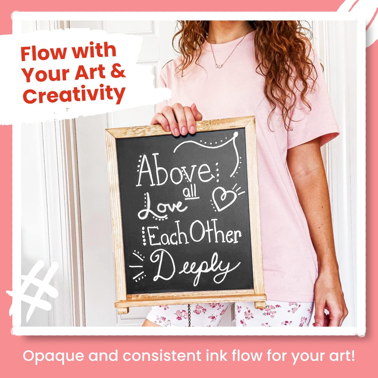 - Long Lasting - While other liquid white pens ink crack under heavy use, our richly pigmented chalk marker pen set stays fray free.